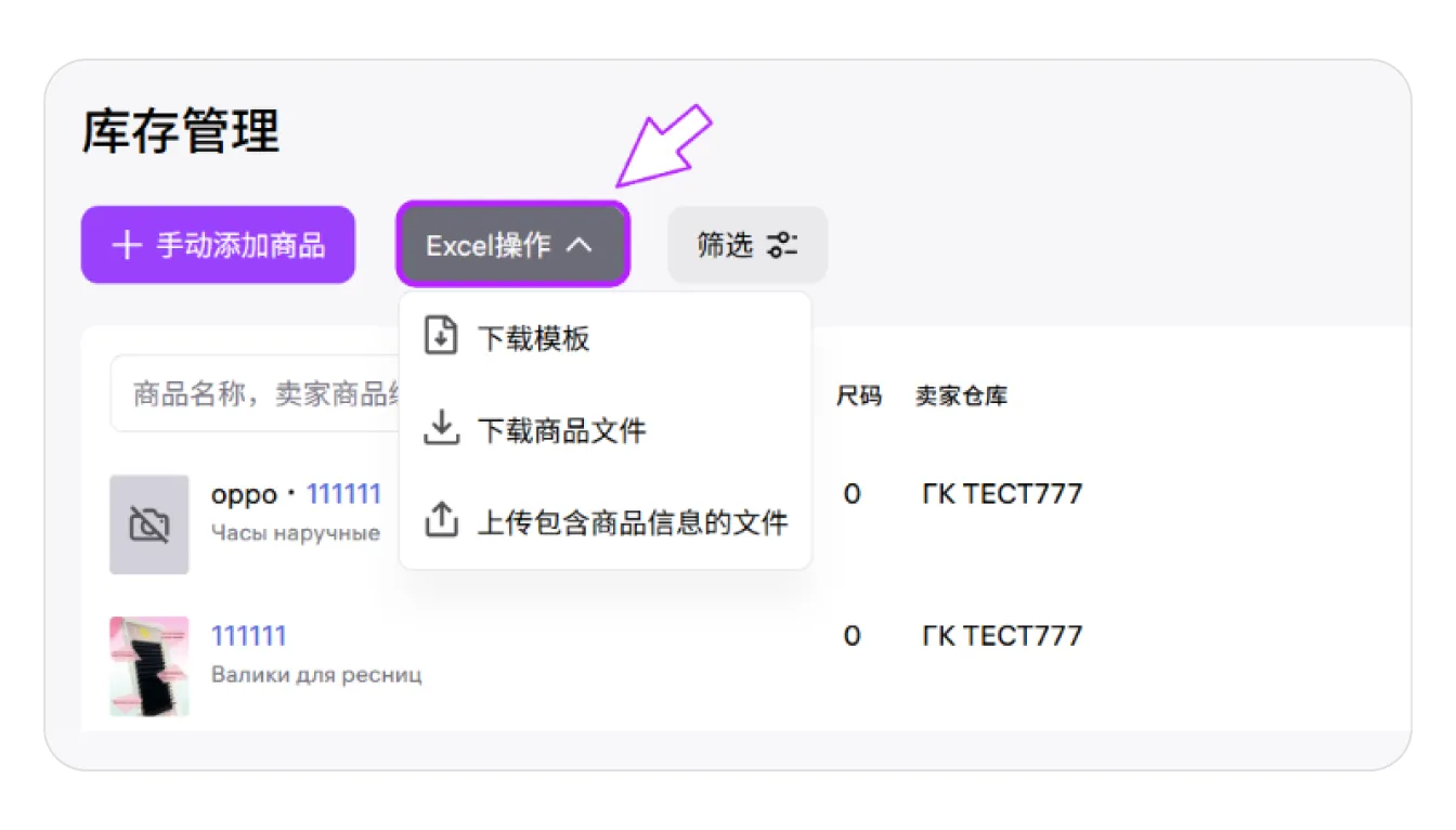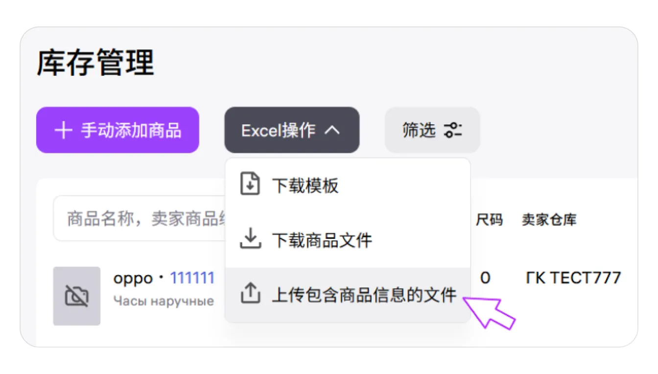 也可以上传更新后的 XLSX 文件,具体步骤见上文“通过 XLSX 模板上传库存”。