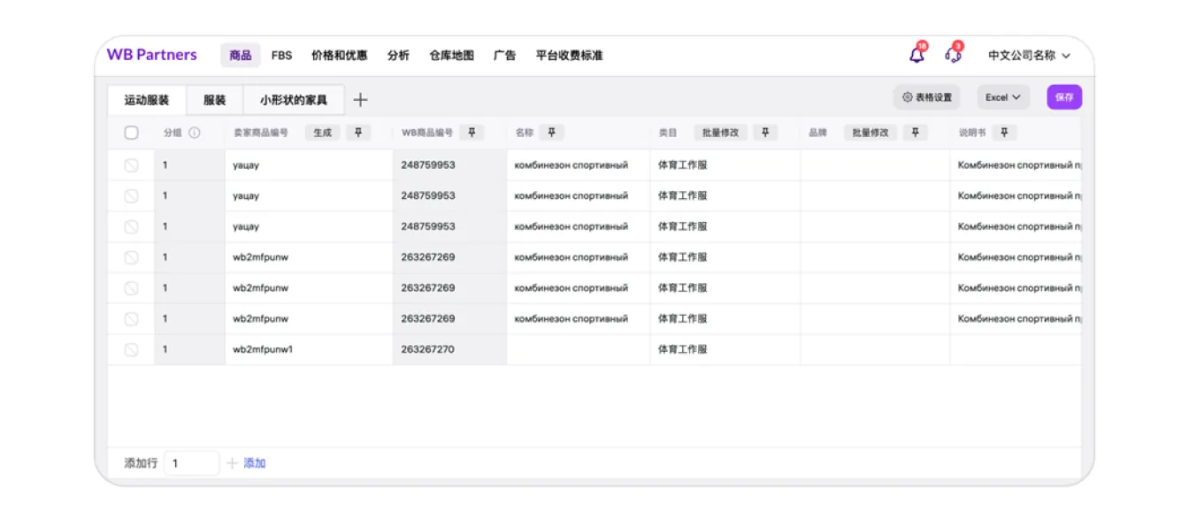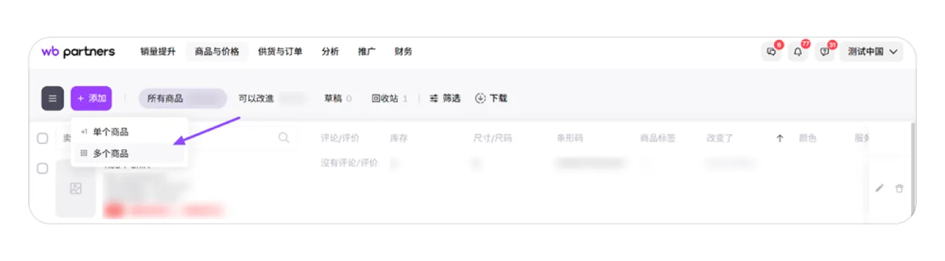 - 选择您想添加或修改的商品特征列。点击“批量修改”,即可一次性为所有行添加相同的值。如果不希望在所有行中填写相同的信息,可以分别填写每个单元格。