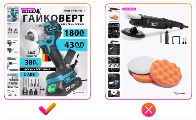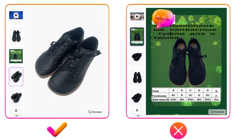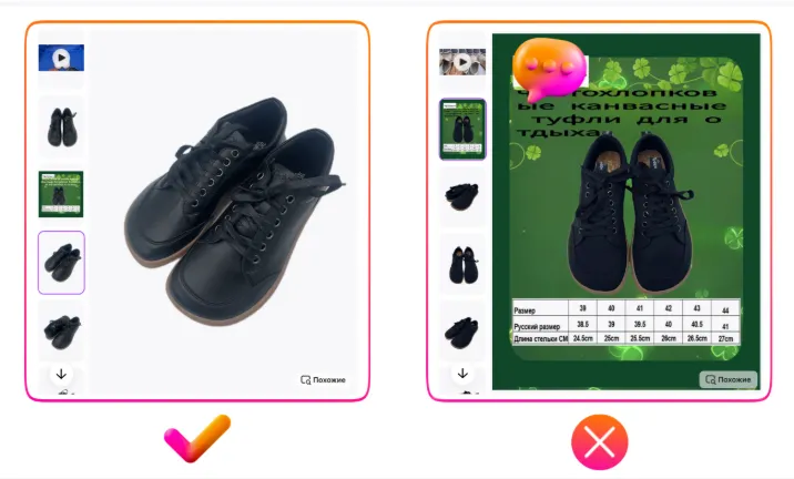 - 严格遵守 Wildberries 平台规范非常重要:商品图片中不得出现外部品牌标志、广告语或其他指引用户前往第三方平台的内容。