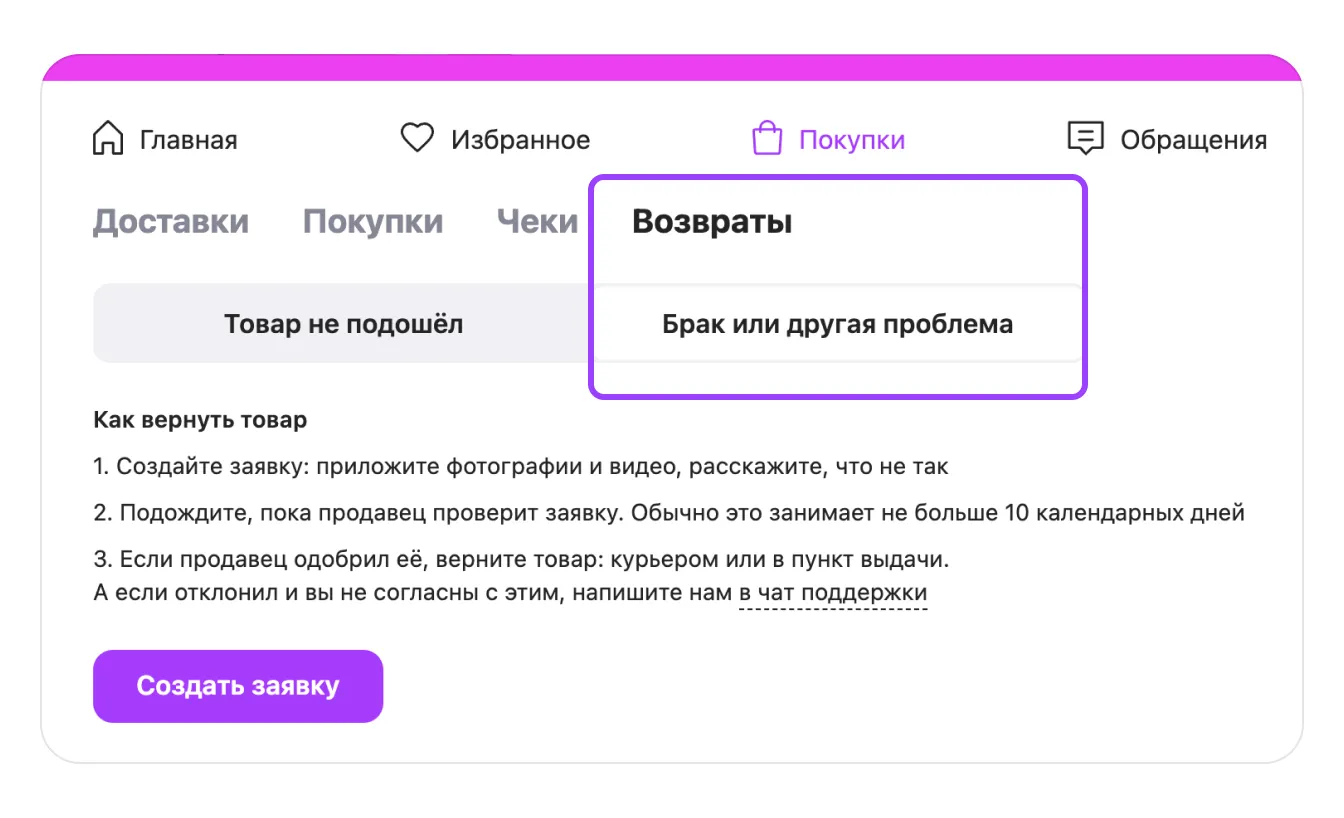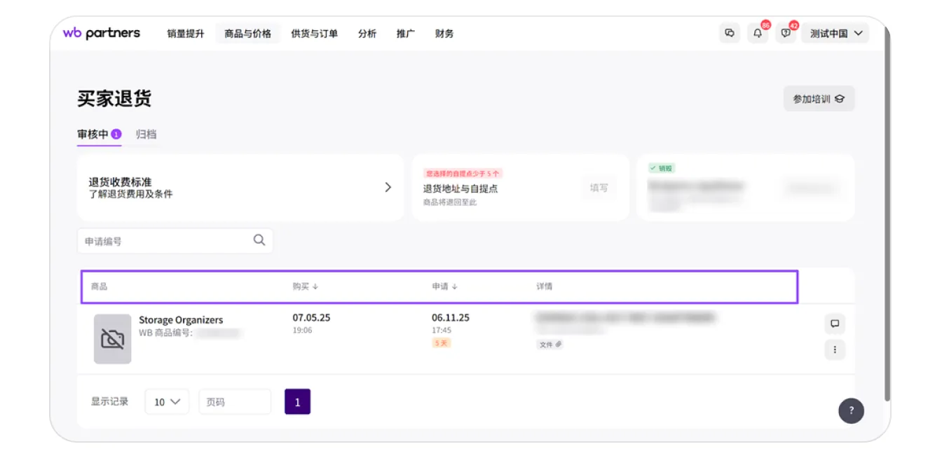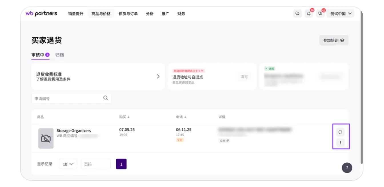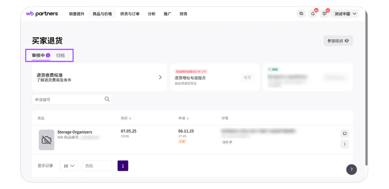 买家可以在 Wildberries.ru 个人账户中提交退货申请:进入 “配送” → “退货”,按照指引操作。 无论商品是从中国发货还是从俄罗斯仓库发货,退货申请的处理流程完全相同。