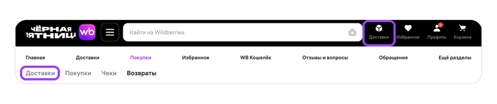 Wildberries.ru → 在“配送”部分。买家网站上的个人资料必须与WB卖家后台账户所有者一致。