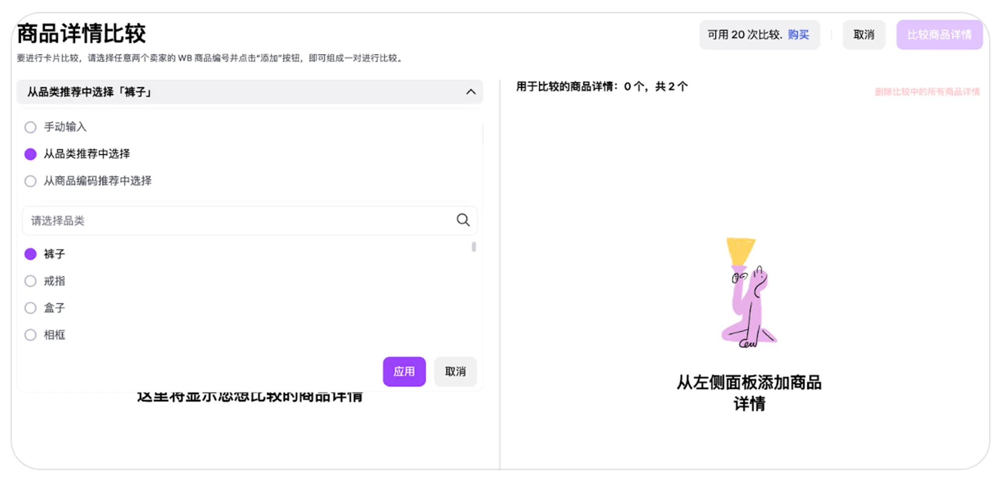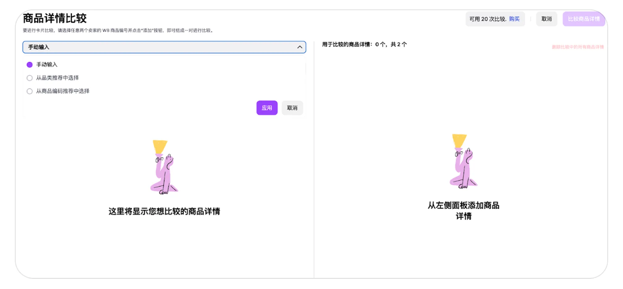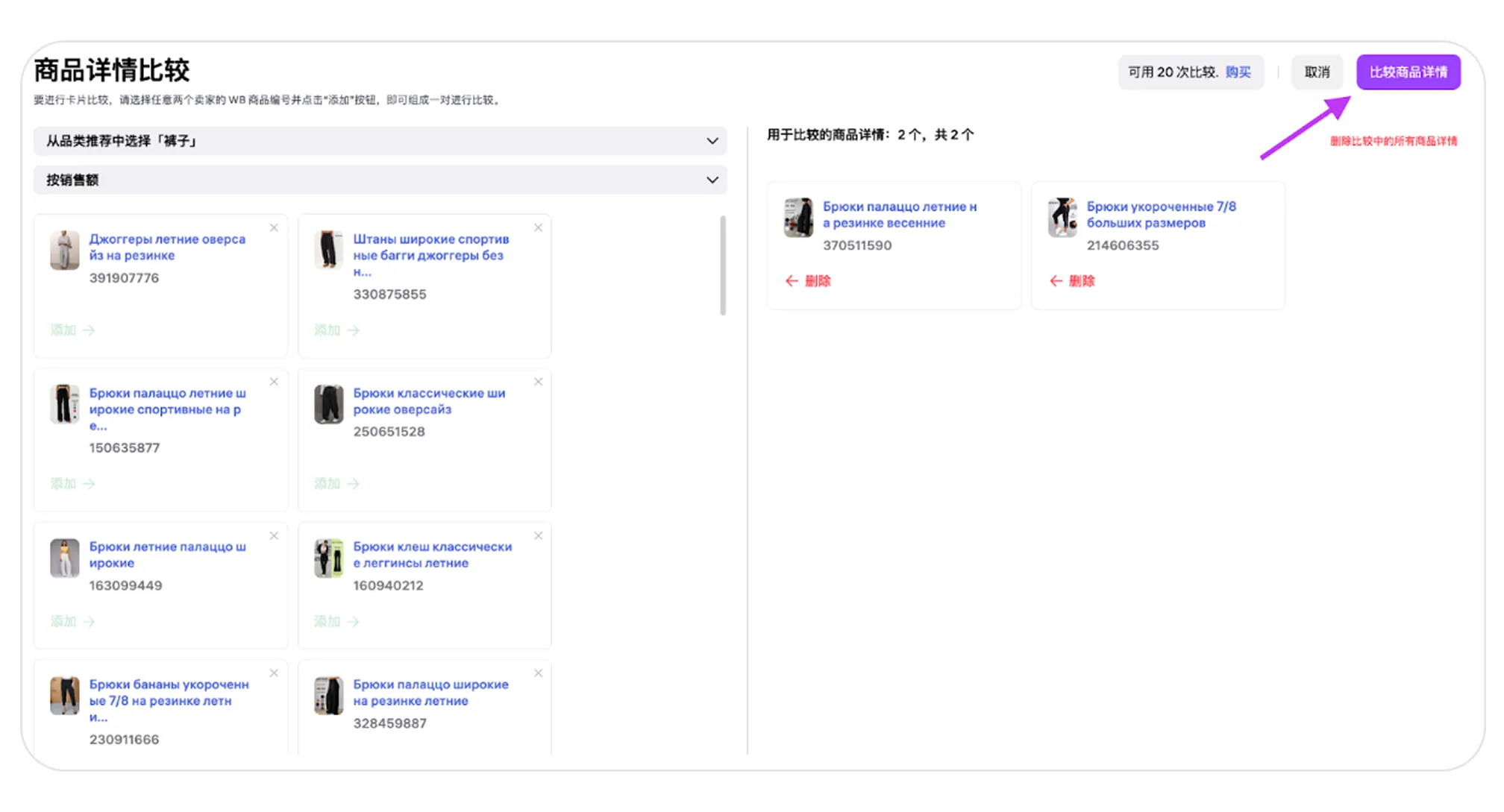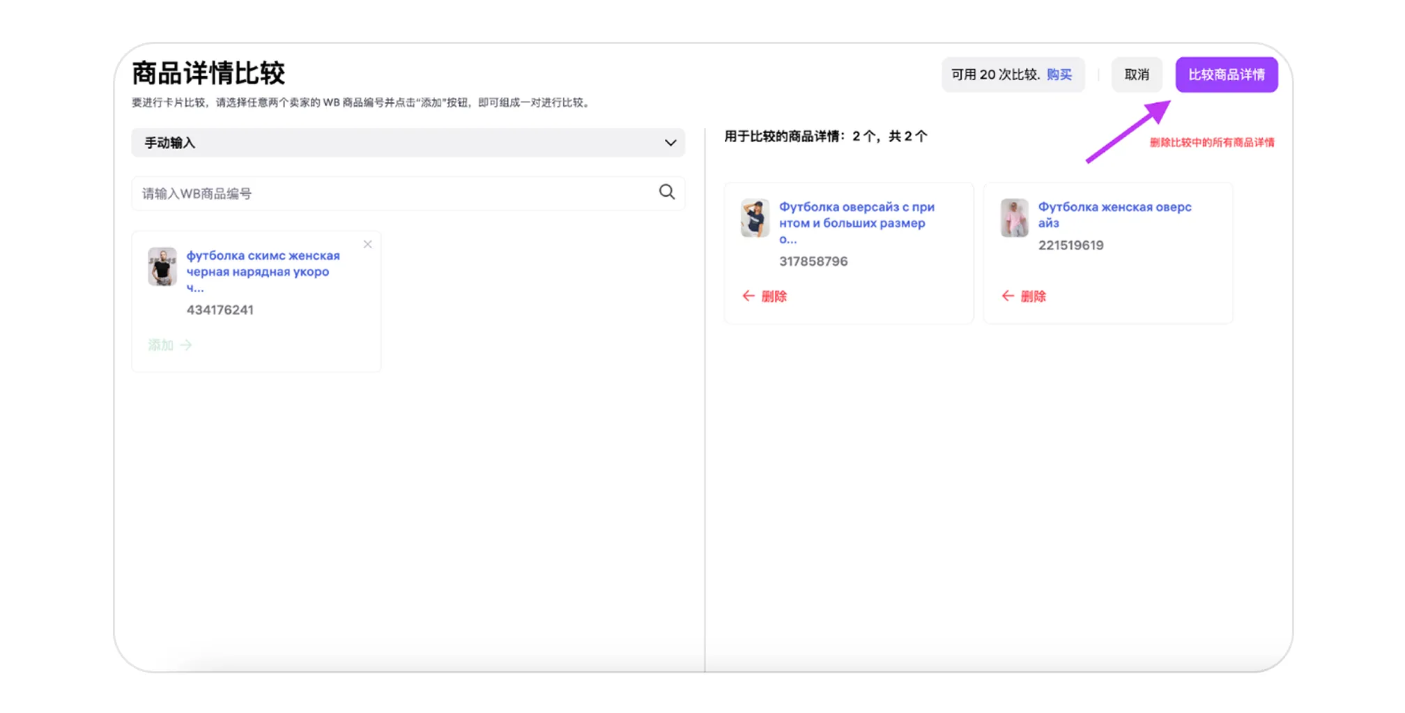 选择该选项并输入您想对比的 WB 商品编号。