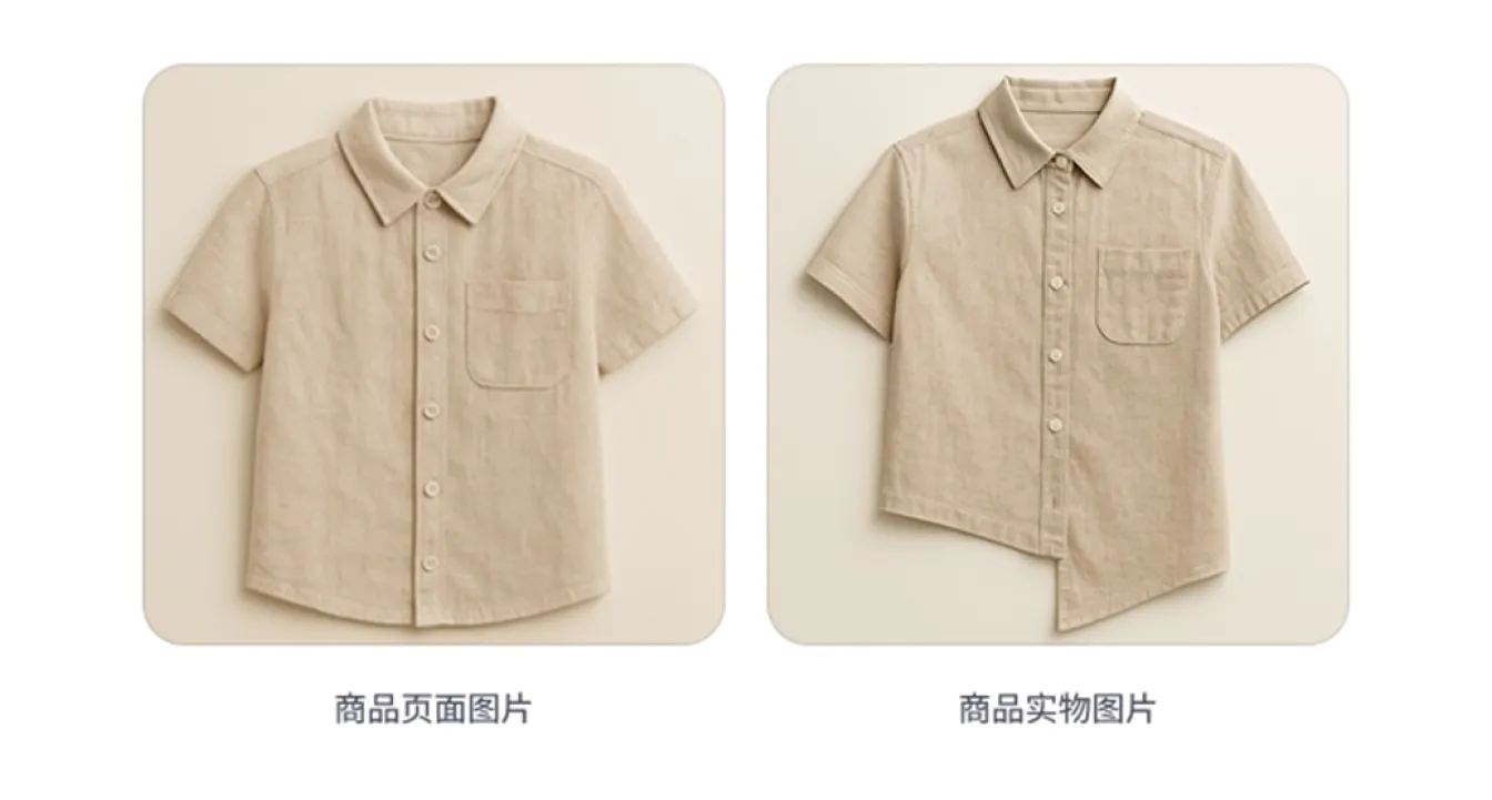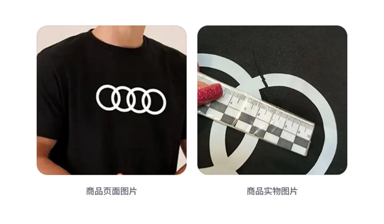 - 服装部件尺寸偏差:商品的部件或整体不对称,且并非是设计上的刻意效果。