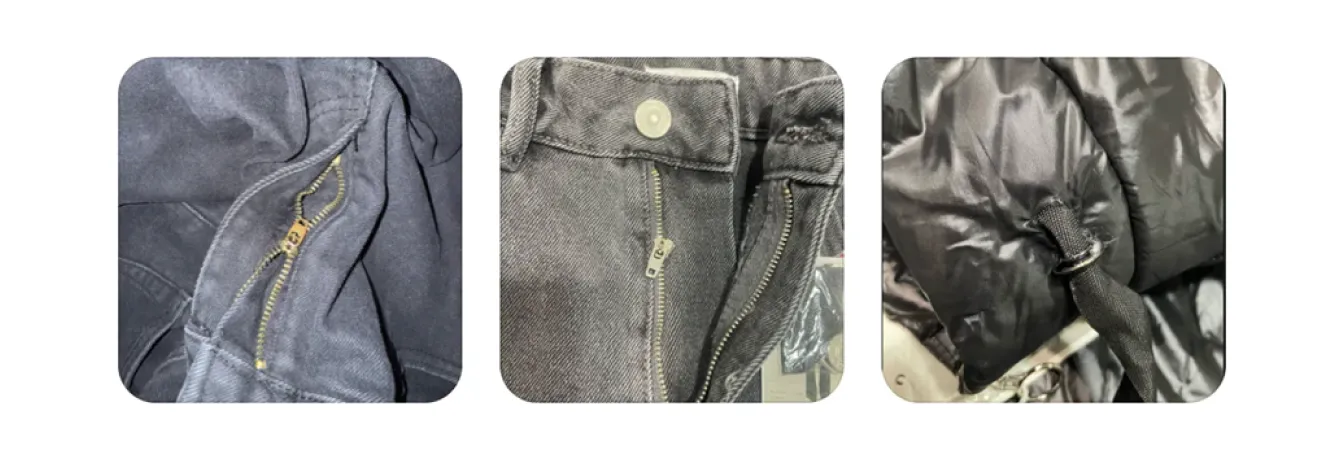 - 辅料质量不佳:辅料存在功能性损坏(纽扣、搭扣、拉链及其他装饰性或附加部件),如开裂、变形;辅料尺寸不匹配(例如纽扣过大或过小)。