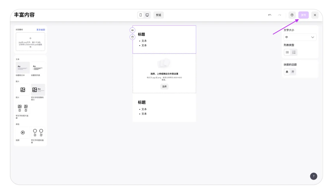 如果不发布富媒体内容并退出编辑器,内容将不会被保存。