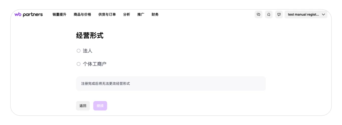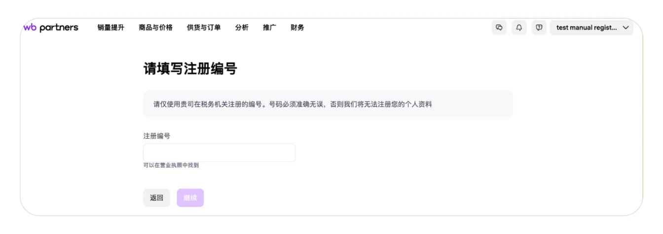 输入验证码后,您将进入卖家注册页面。