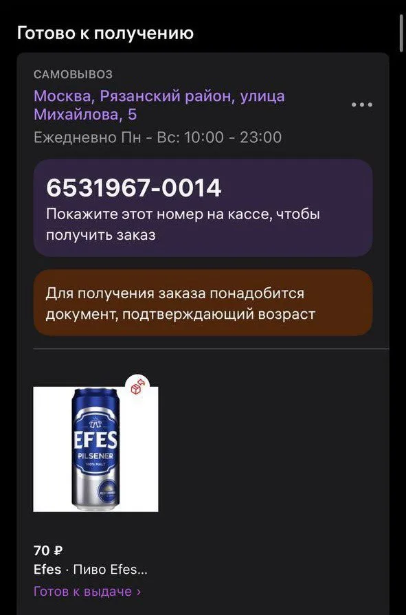 Место сборки заказа и торговая точка, на которой покупатель хочет забрать заказ, могут не совпадать. Пожалуйста, убедитесь, что покупатель получит заказ именно по тому адресу, который он выбрал