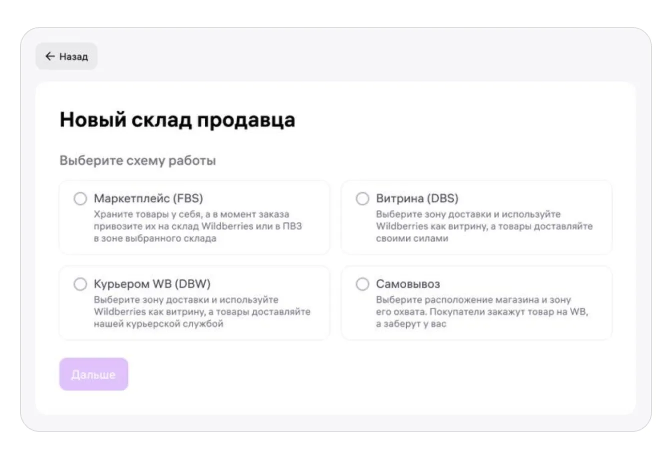 «Самовывоз из магазина продавца» — это модель продаж, при которой покупатель может купить товар в торговой точке продавца, предварительно забронировав его через сайт Wildberries.