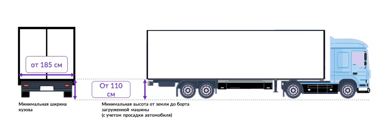 На складах есть технические ограничения процесса разгрузки. Проверьте, что машина, которая повезёт товар, соответствует этим требованиям: