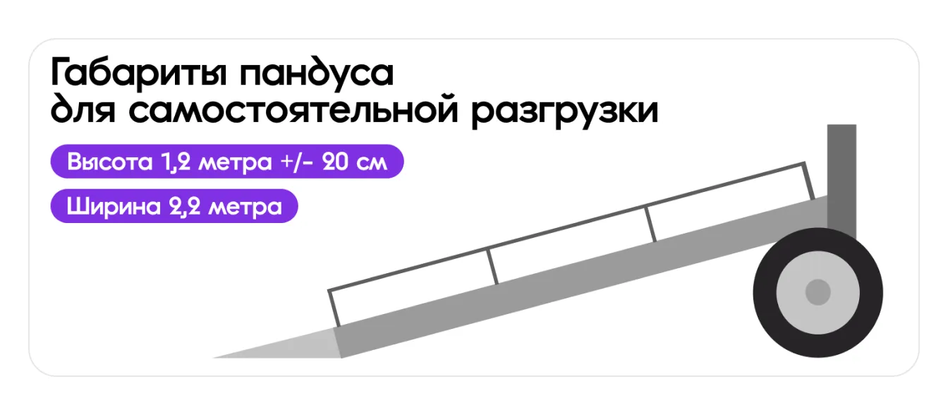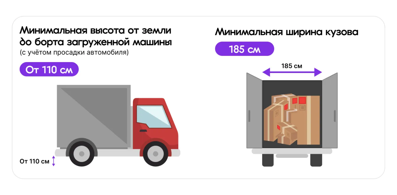 На складах есть технические ограничения процесса разгрузки. Проверьте, что машина, которая повезёт товар, соответствует этим требованиям: