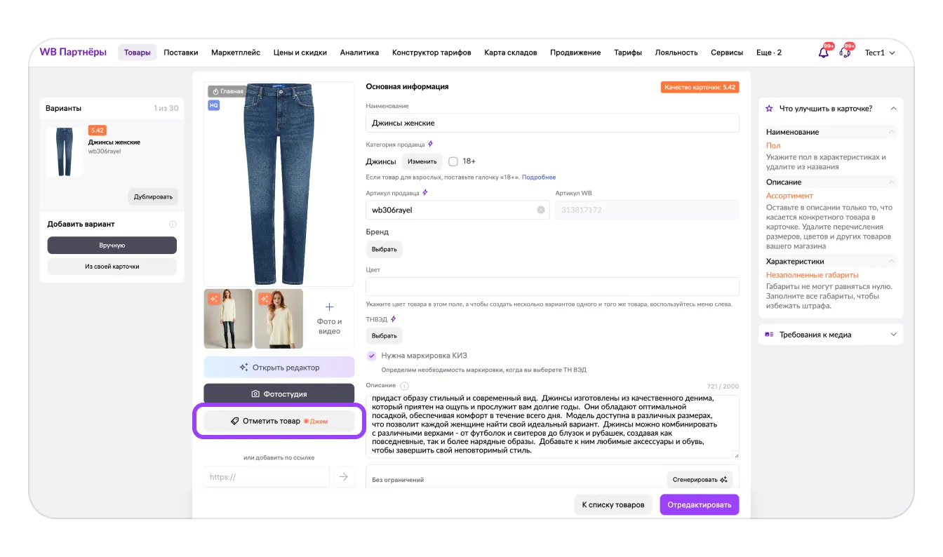 1. Нажмите «Отметить товар» под фото товара в карточке.