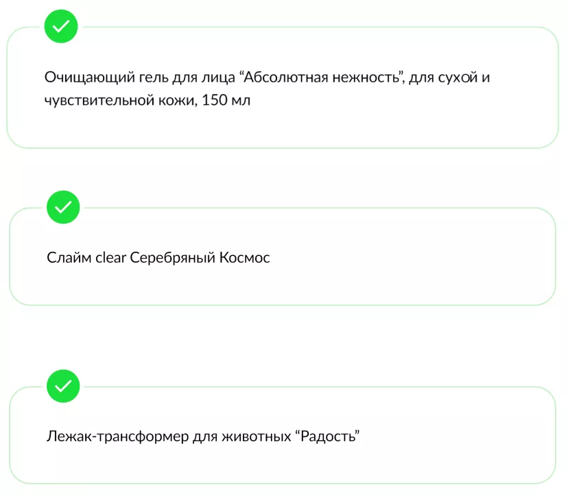 Здесь перечислите, какие предметы и в каком количестве приедут к покупателю, если он закажет ваш товар.