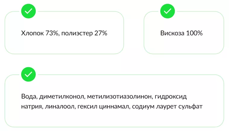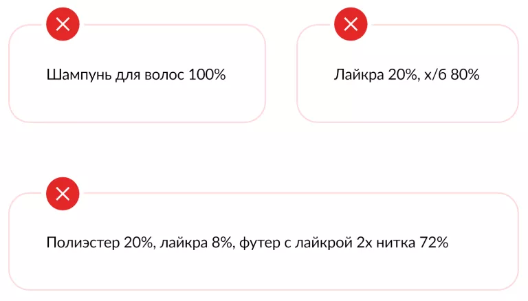 Для товара «шампунь для волос» в поле «состав» нужно указать не «шампунь 100%», а подробно описать, из чего состоит шампунь: «Кокосульфат натрия; глицерин; глюкозид; хлорид натрия; бутиленгликоль, мочевина; глутаминовая кислота; аргинин; Лизин; глицин; аллантоин; молочная кислота»