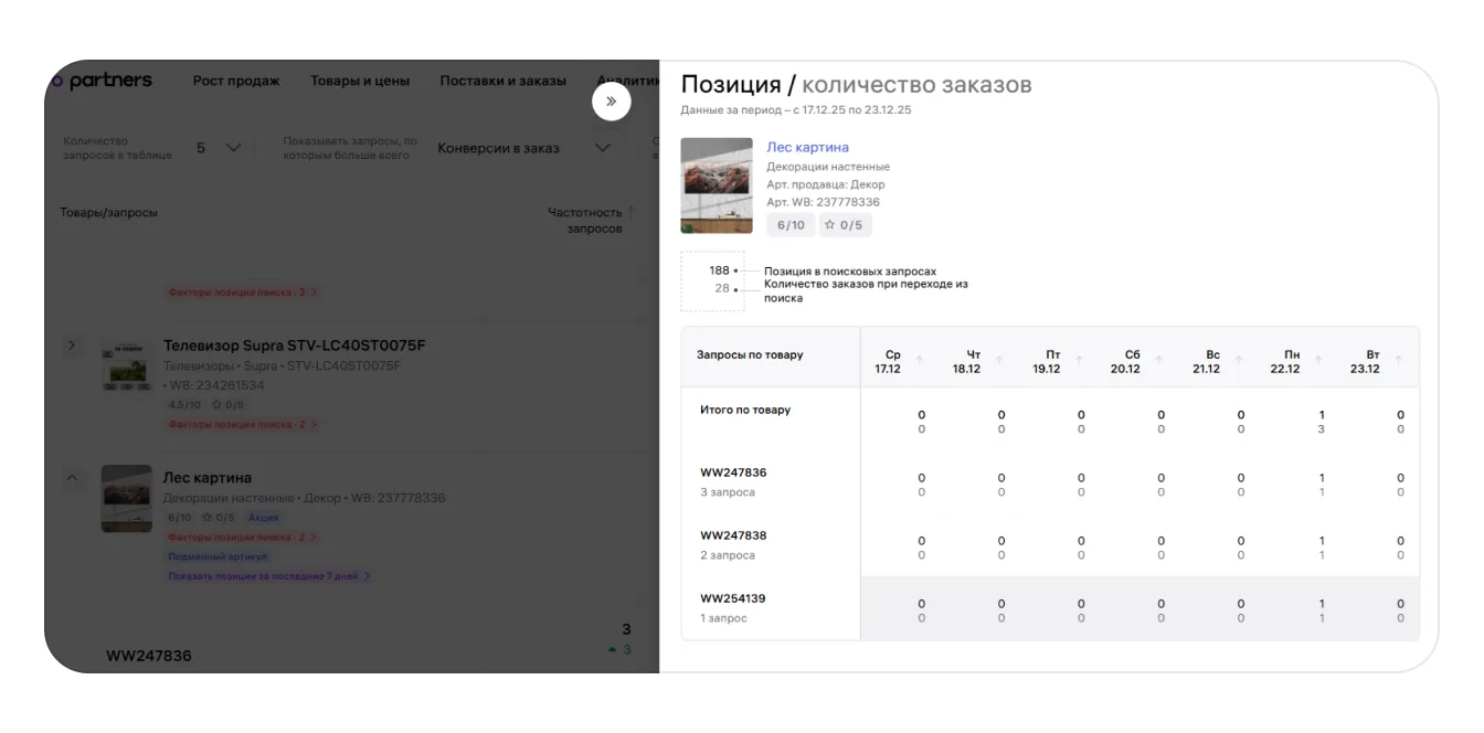 Обновлено 23.12.2025Отчёт «Поисковые запросы: ваши товары»