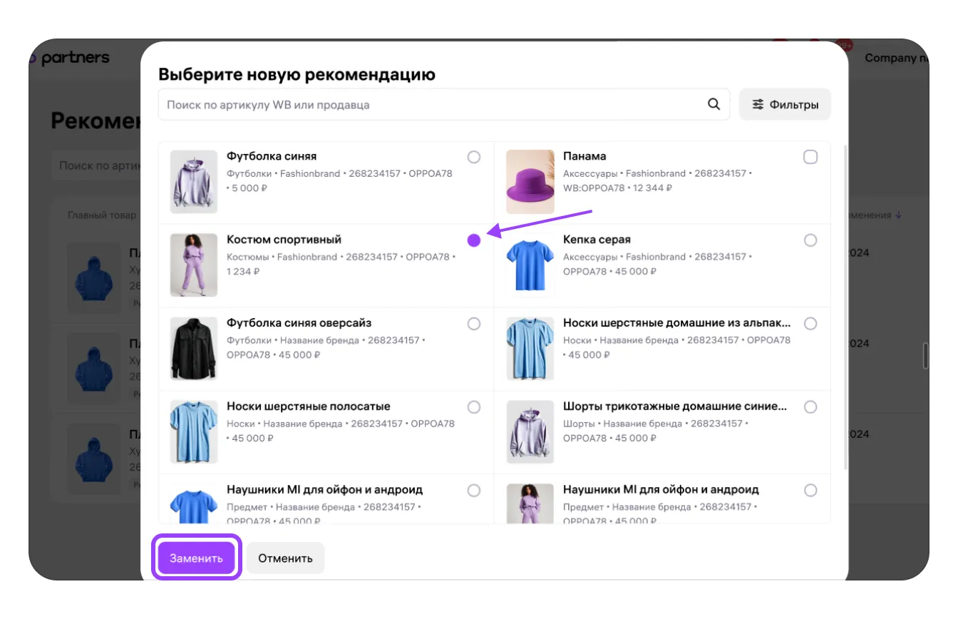 Замена товара в рекомендациях