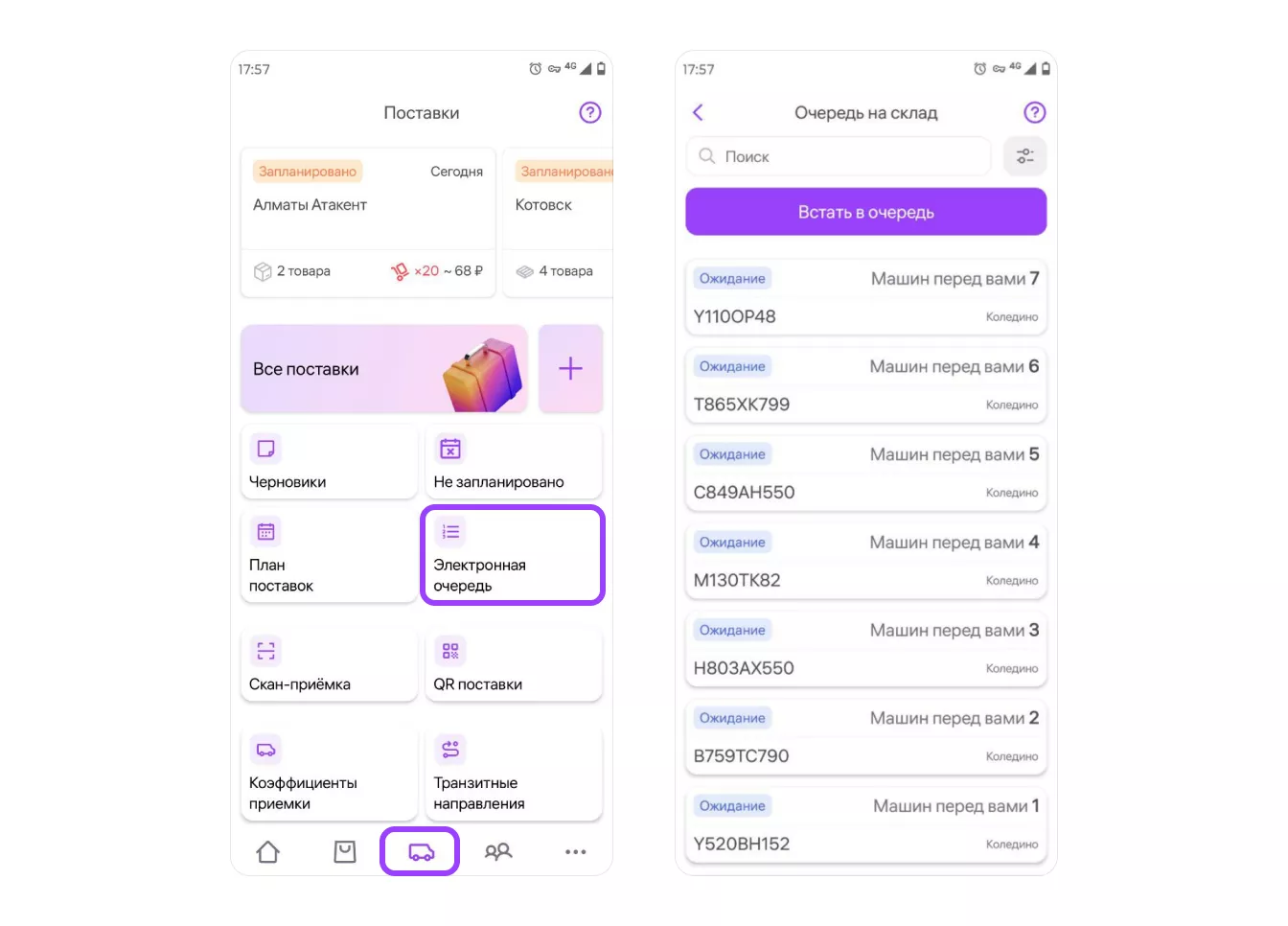 В приложениях можно найти свой автомобиль, посмотреть очередь на нужный склад или машины с определённым статусом.