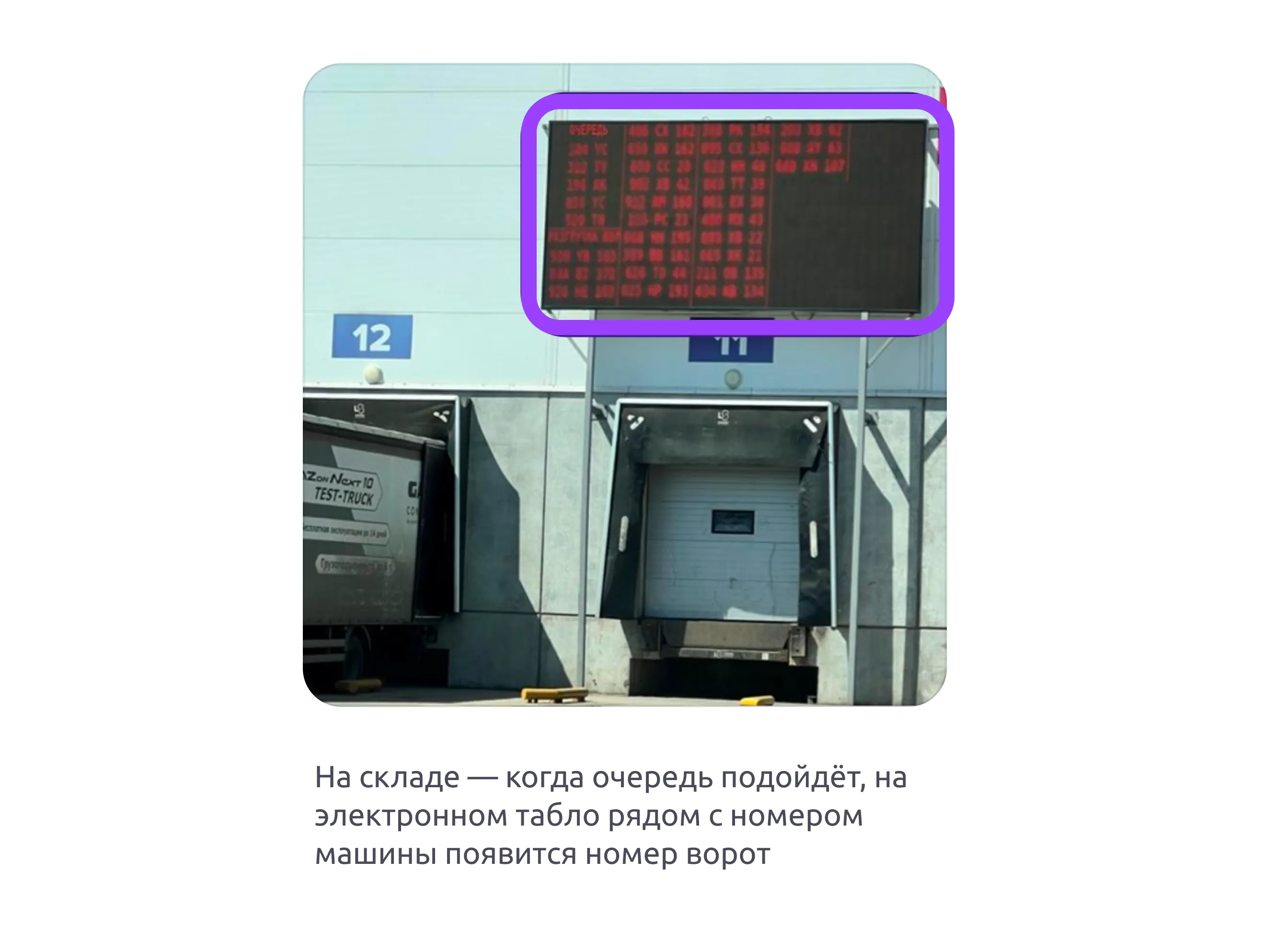 Когда машина заезжает на территорию склада или сортировочного центра, она попадает в очередь на отгрузку.