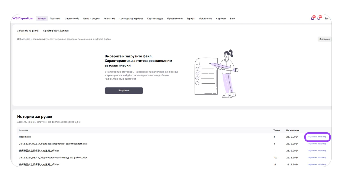 1. Загруженные вами файлы хранятся в истории загрузок два дня. Если в какой-то из файлов нужно внести изменения, нажмите «Перейти в редактор».