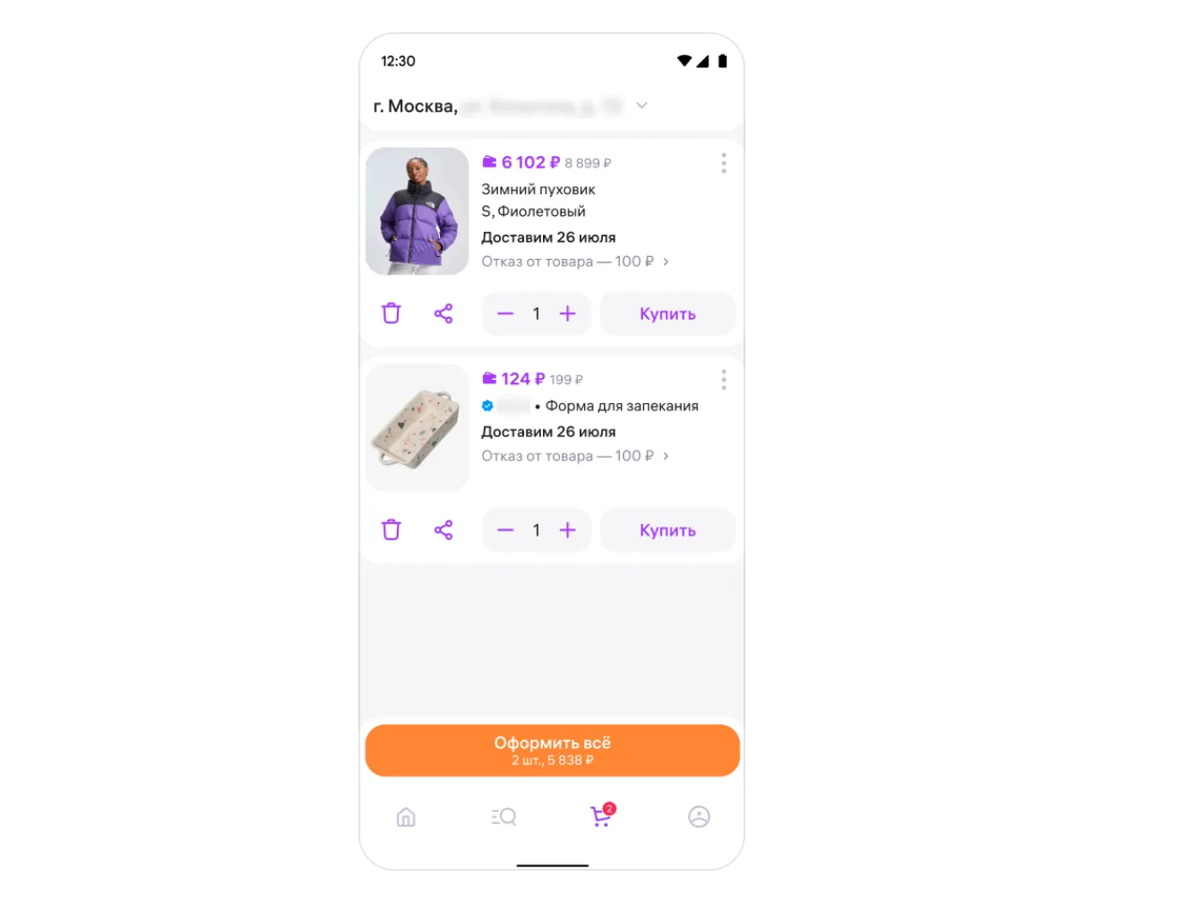 На первом этапе корзины будет видно бренд.