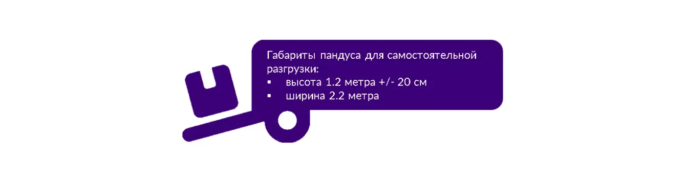 На складах есть технические ограничения процесса разгрузки. Проверьте, что машина, которая повезёт товар, соответствует этим требованиям:
