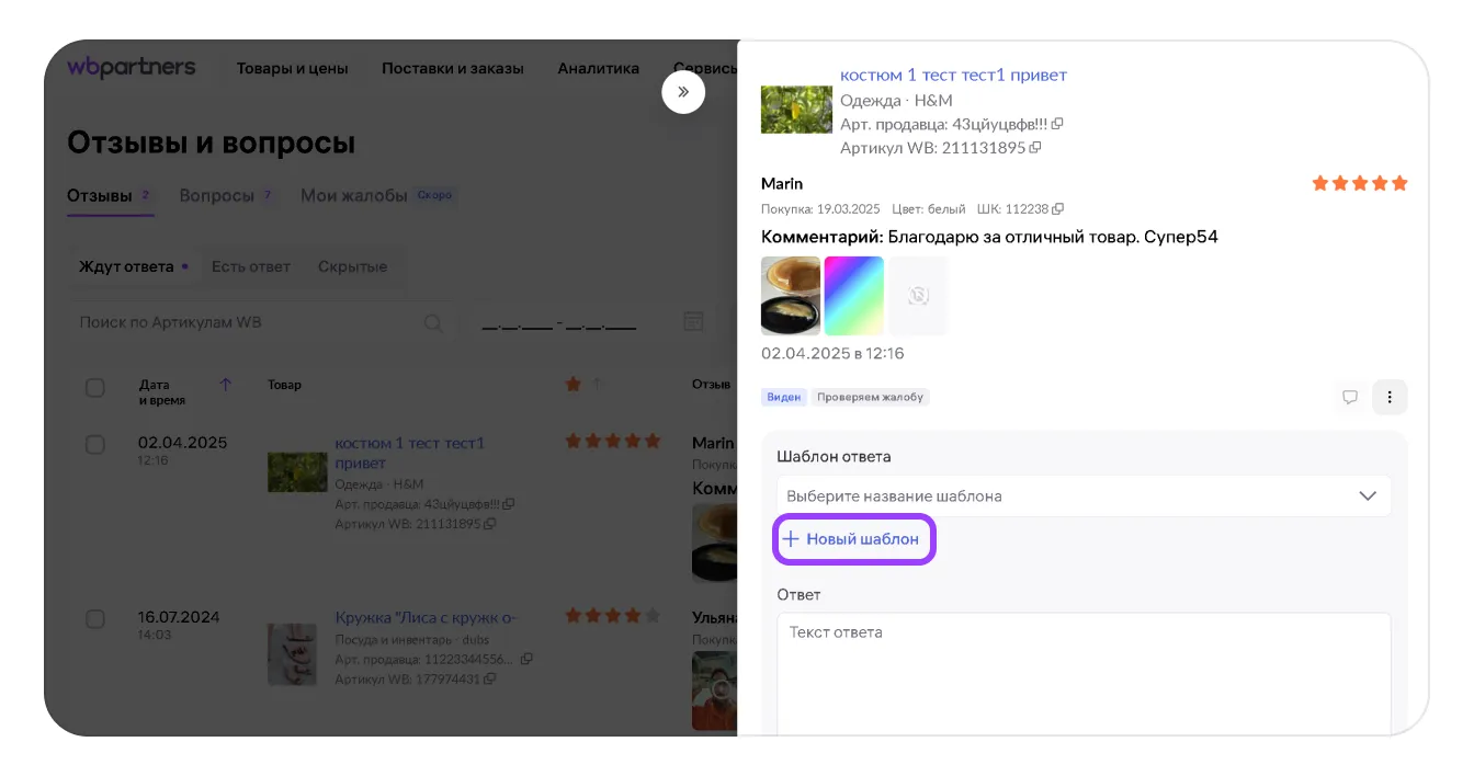 Ваш ответ на отзыв появится на сайте и в приложении Wildberries с пометкой «Ответ продавца». Ответы продавцов со статусом «Премиум» отображаются с логотипом магазина.