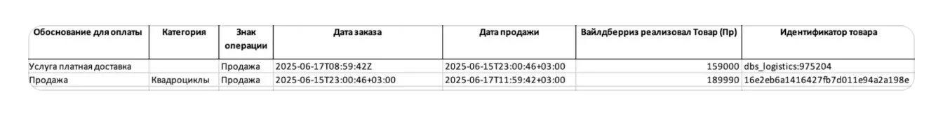 В столбце «Признак услуги платной доставки» будет указано «Да». Это столбец позволяет увидеть, какие товары доставили покупателям по модели «Витрина Экспресс» (EDBS) с услугой платной доставки.
