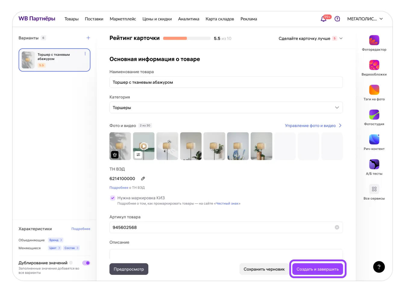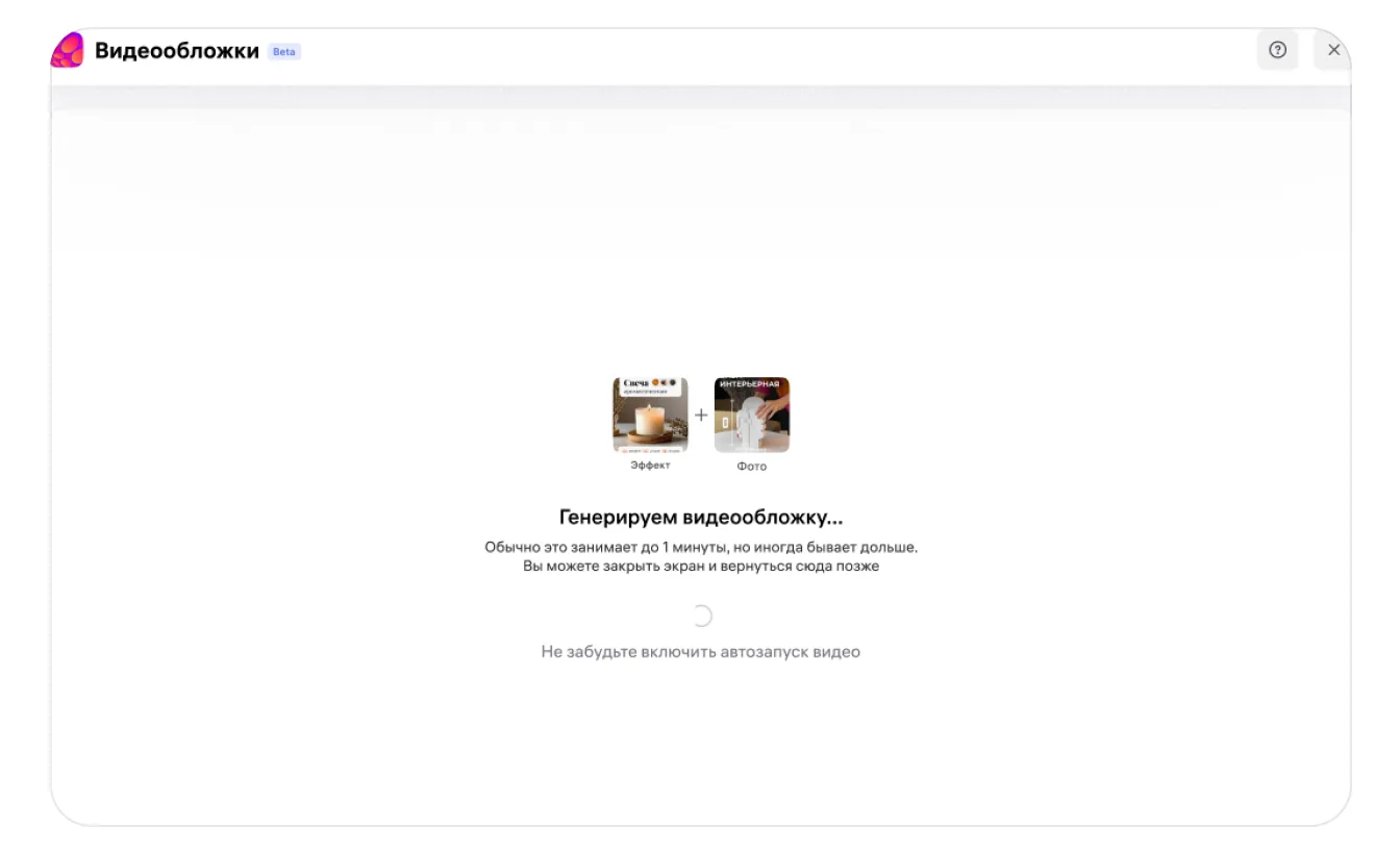 Вы можете создать видеообложку для вашей карточки товара. Добавьте в карточку фото и с помощью сервиса «Видеообложки» сгенерируйте из них видео с эффектами.