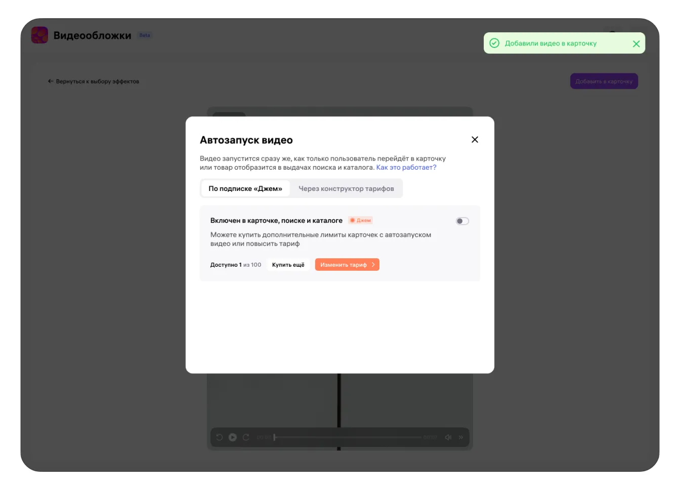 Если вы пользуетесь «Конструктором тарифов», количество карточек с автозапуском видео для вас не ограничено.