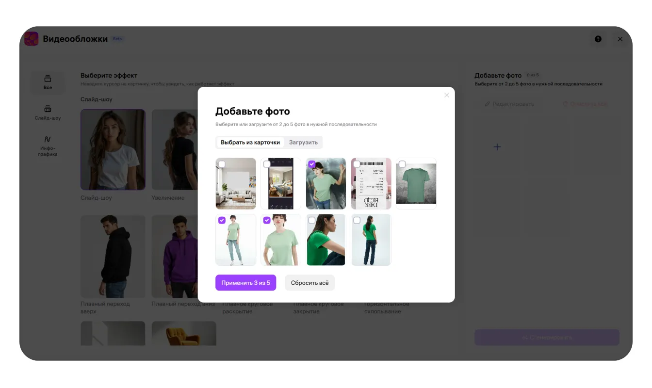 Добавьте от 2 до 5 фото в нужной последовательности.