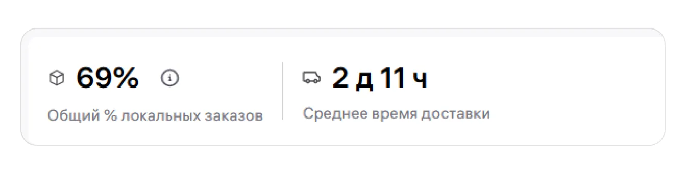 Обратите внимание, на виджете статистики используются два объединённых кластера регионов: ДФО + СФО и ЮФО + СКФО. Если заказ отправлен со склада в одном из регионов внутри кластера и доставлен покупателю в другой регион того же кластера, такой заказ всё равно считается локальным