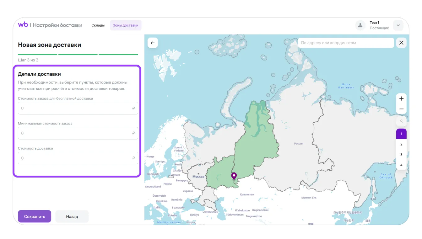 Выбор зоны доставки определяет географию ваших продаж и влияет на их количество. Ваши товары не увидят покупатели, которые в приложении или на сайте Wildberries указали адрес курьерской доставки за пределами вашей зоны.
