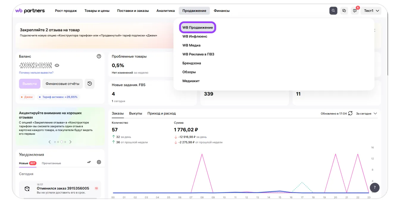 Зайдите на портал в раздел Продвижение → WB Продвижение.