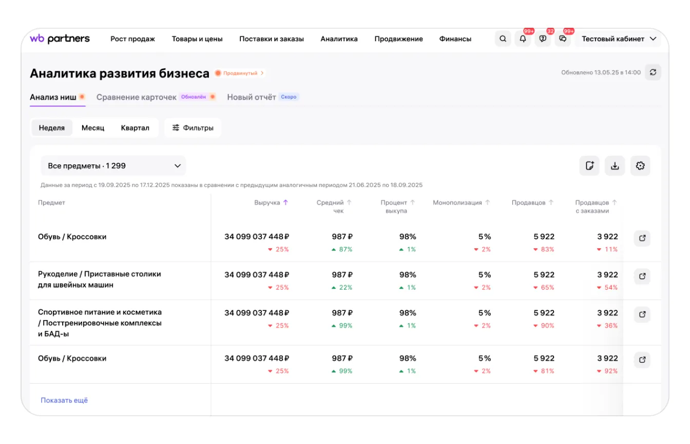 Анализ ниш — это отчёт, который поможет вам найти новые перспективные ниши для торговли, проанализировать состояние текущих ниш, а также определить, насколько востребованы ваши товары.