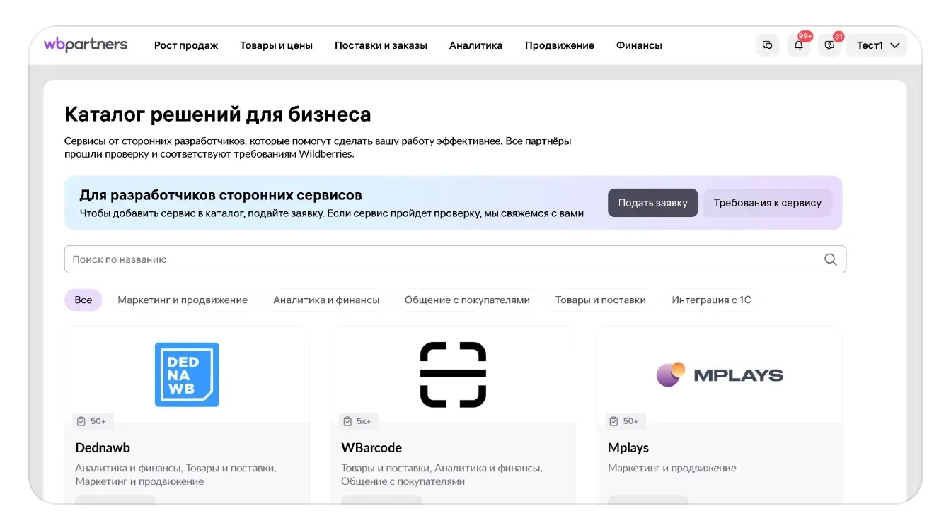 1. Откройте каталог решений для бизнеса Wildberries.