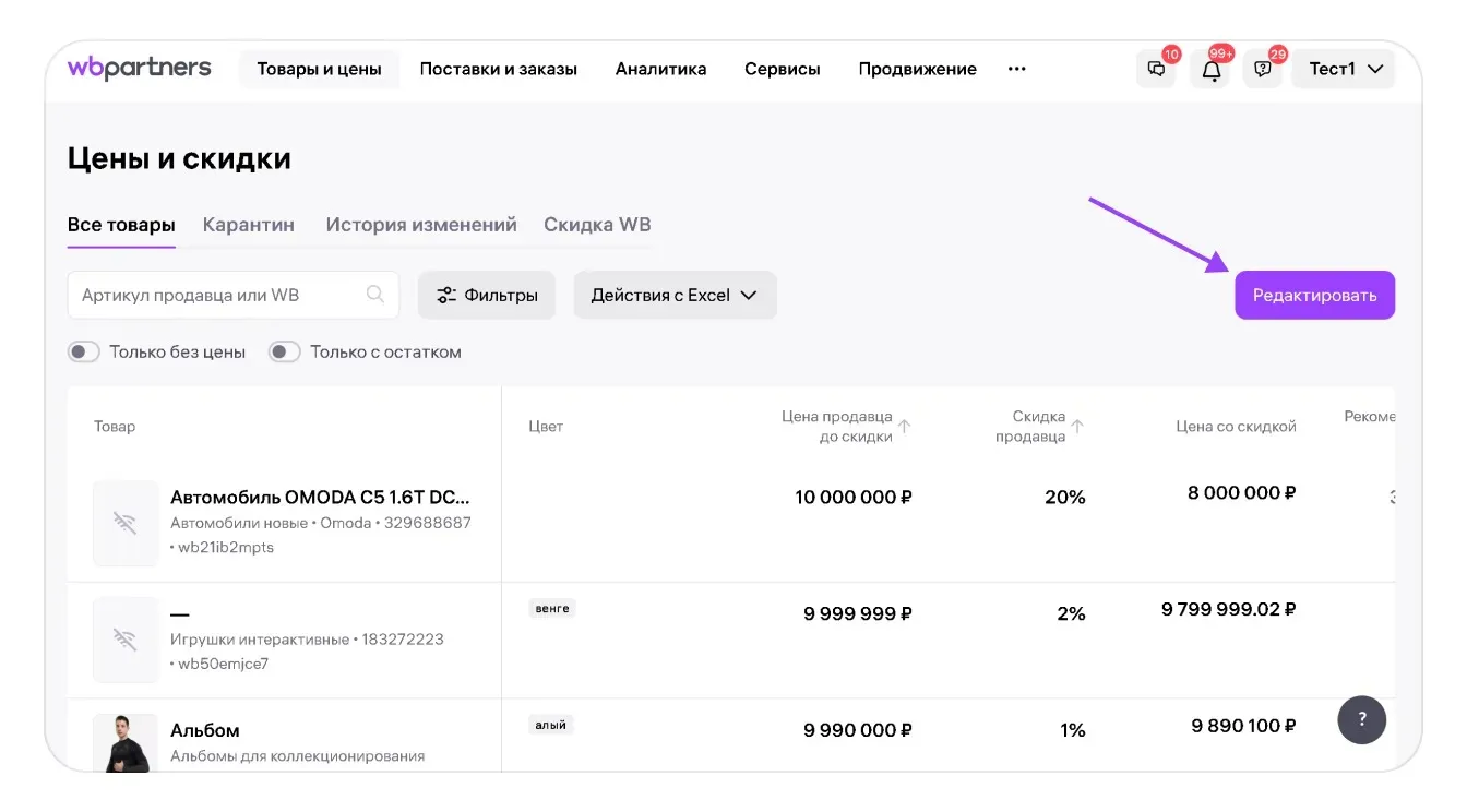 Цену и скидку на товар вы устанавливаете на портале WB Партнёры, но в интернет-магазине и приложении Wildberries покупатели видят другие цены.