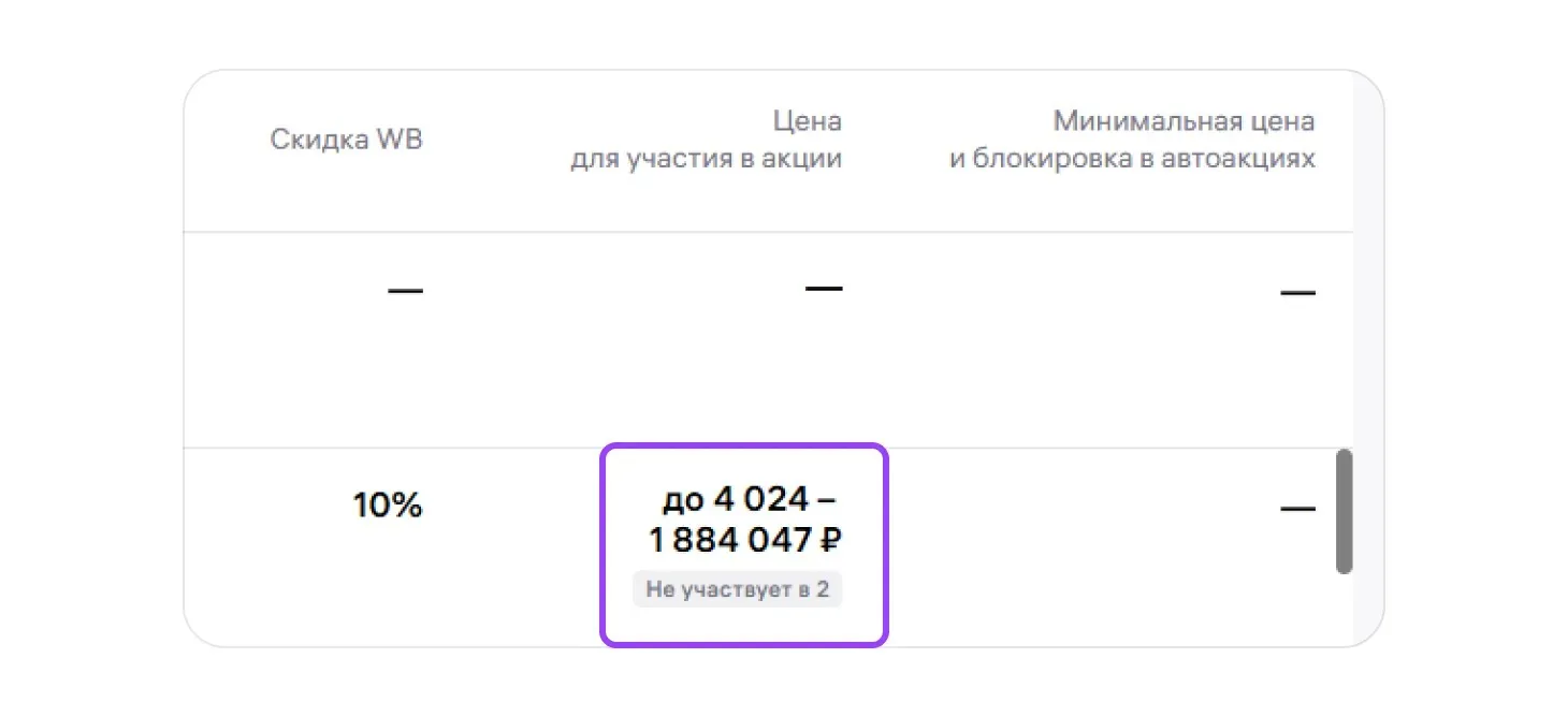 Также в столбце «Цена для участия в акции» вы можете увидеть акционную цену товара, актуальный статус его участия в акции и статус автоакции.