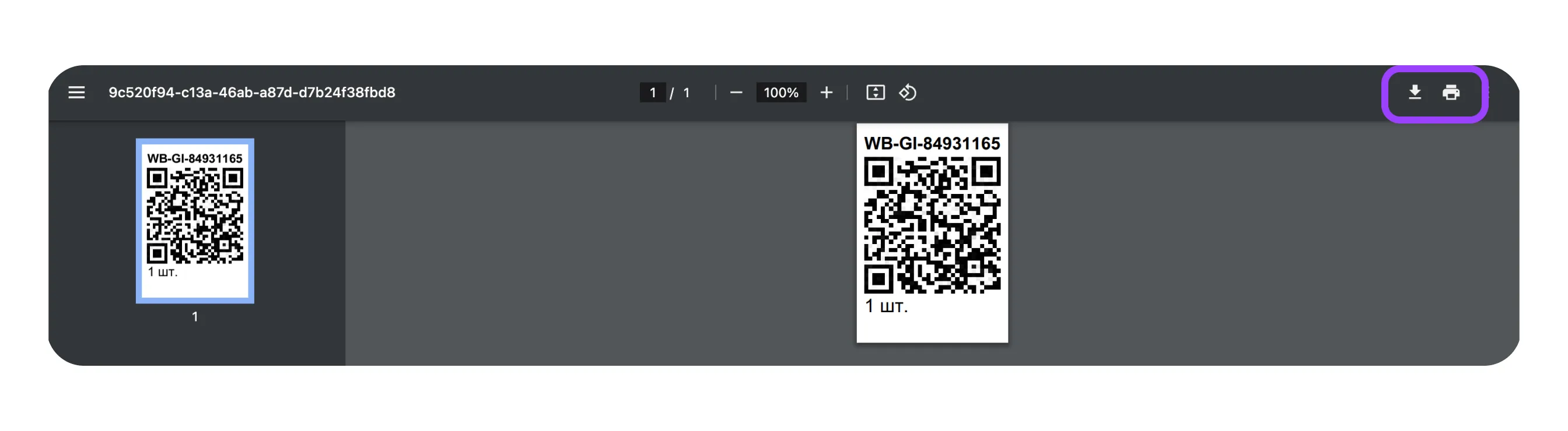 Откроется окно, где вы можете сохранить или распечатать QR-код поставки.