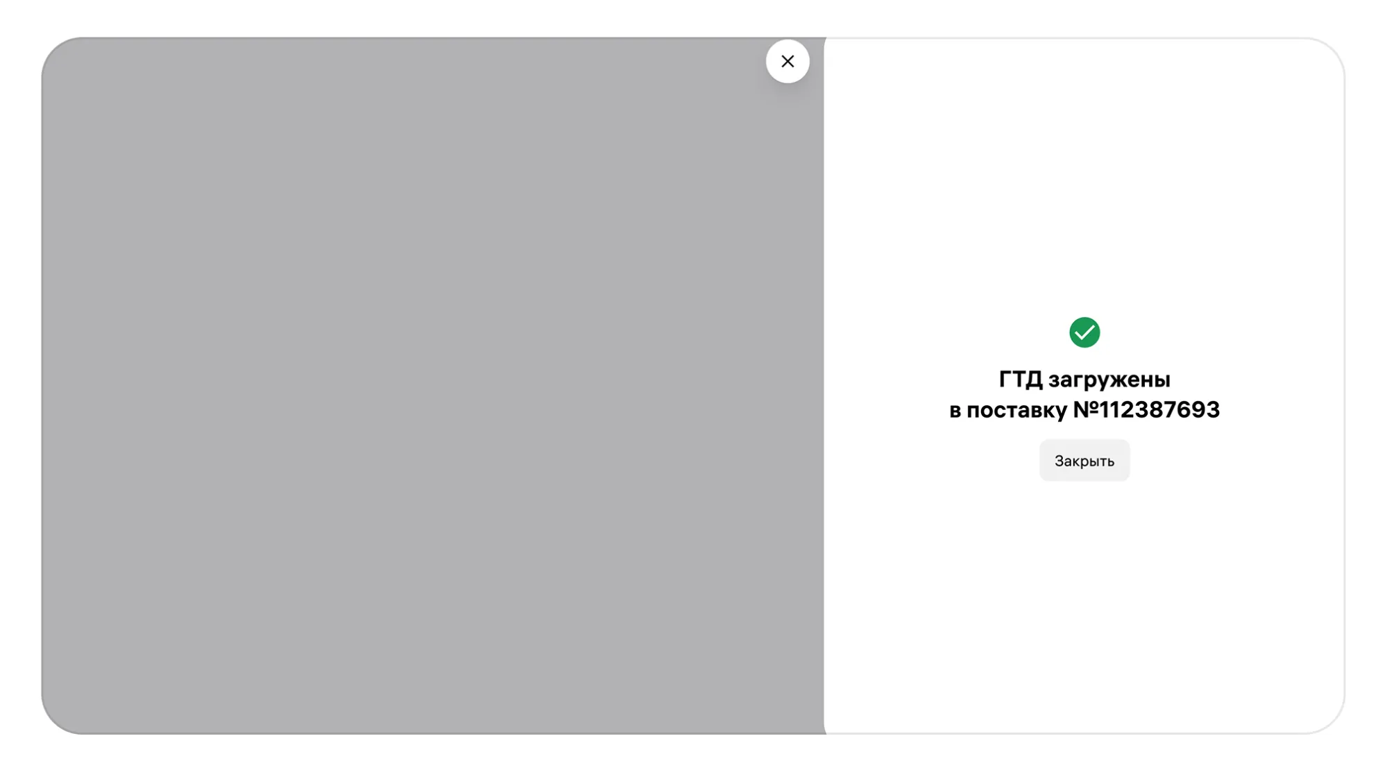 Если всё заполнено верно, файл ГТД загрузится, и вы увидите на экране подтверждение.