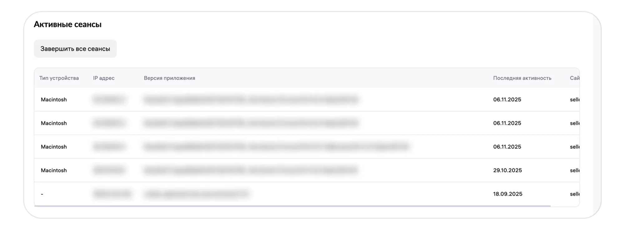 Ниже на вкладке «Безопасность» вы можете увидеть все активные сеансы и завершить их — по одному или все сразу.
