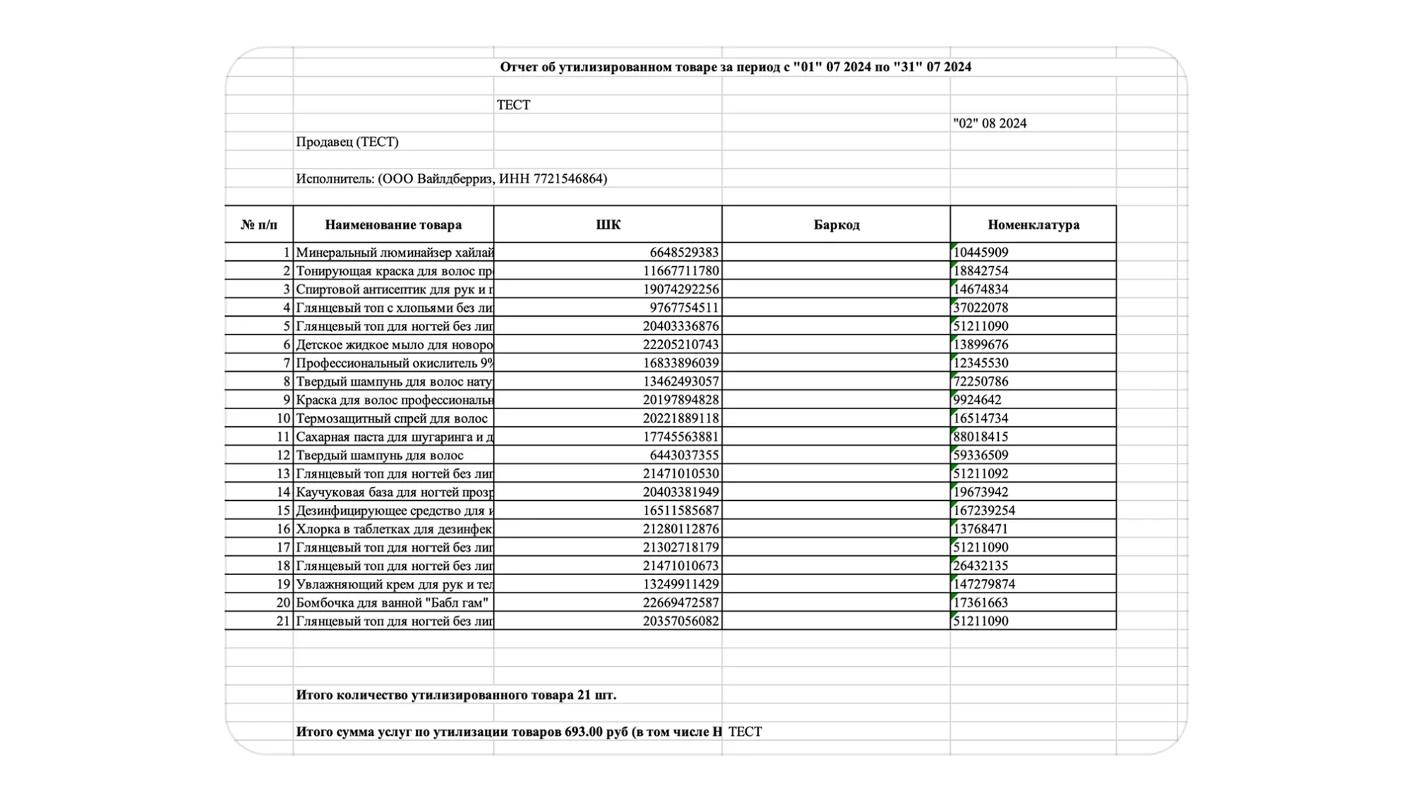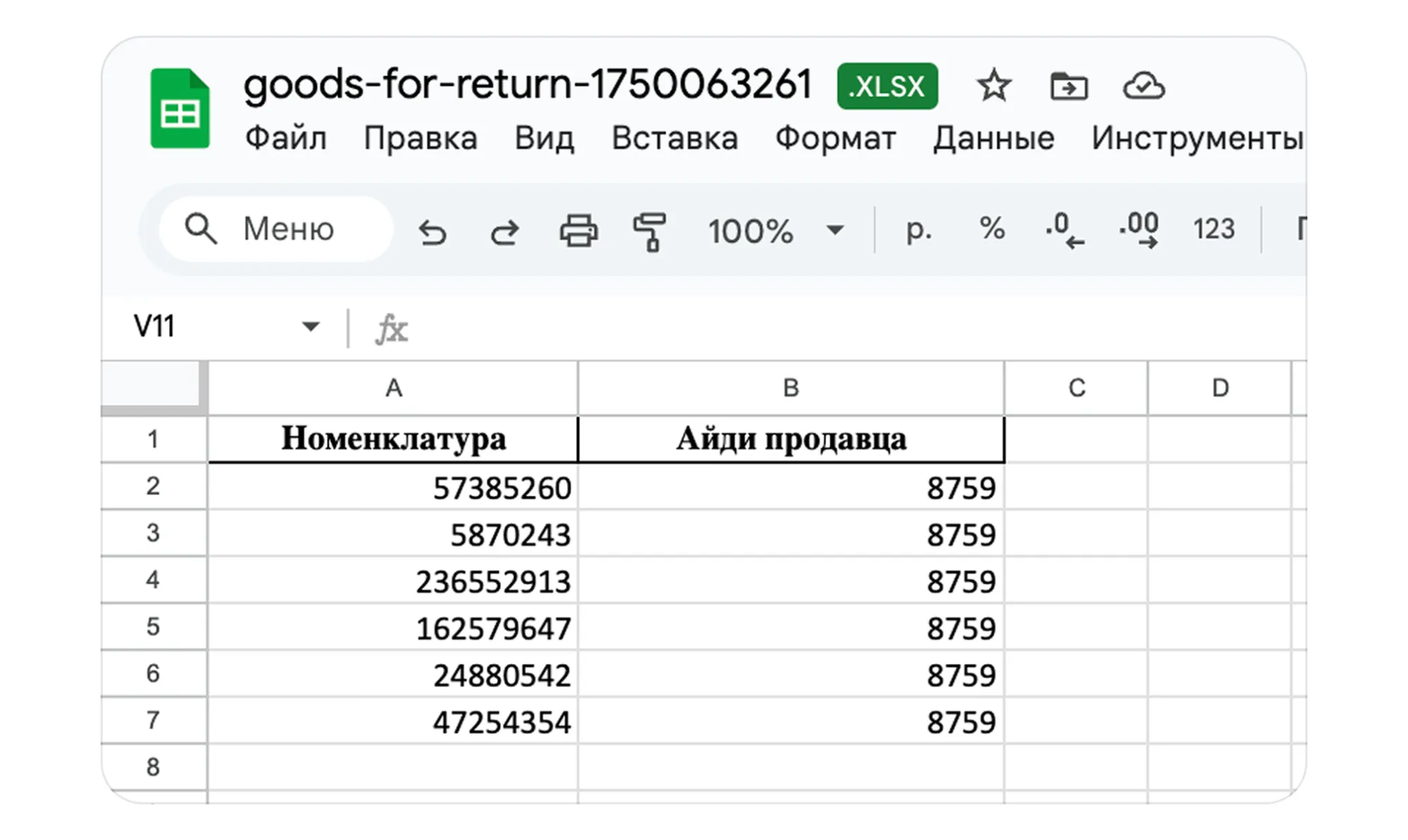 Список товаров, которые предлагаем вернуть, формируется в виде документа «Товары на возврат». В нём — список артикулов товаров и ID продавца. Если хотите вернуть товары из списка со скидкой, оформите заявку на возврат по инструкции. По заявке товары вернутся в ПВЗ, где вы сможете их забрать.