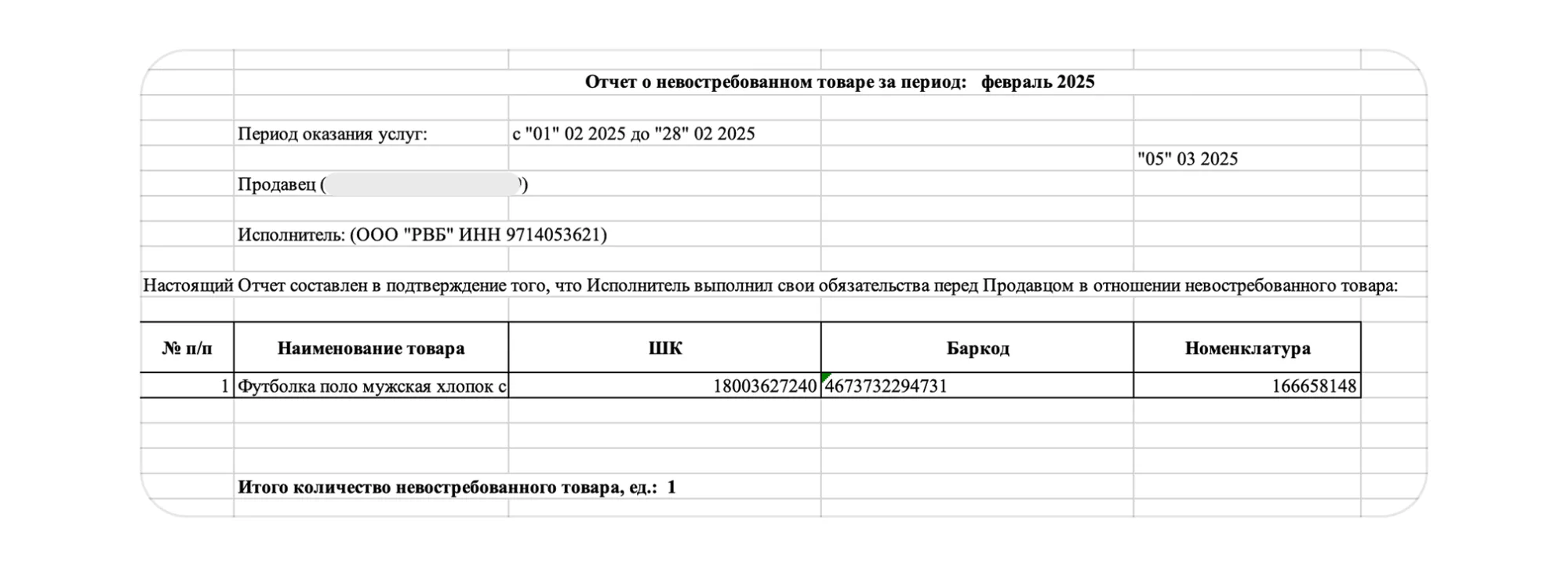 Содержит информацию о возврате товаров, которые продавец получил в ПВЗ.