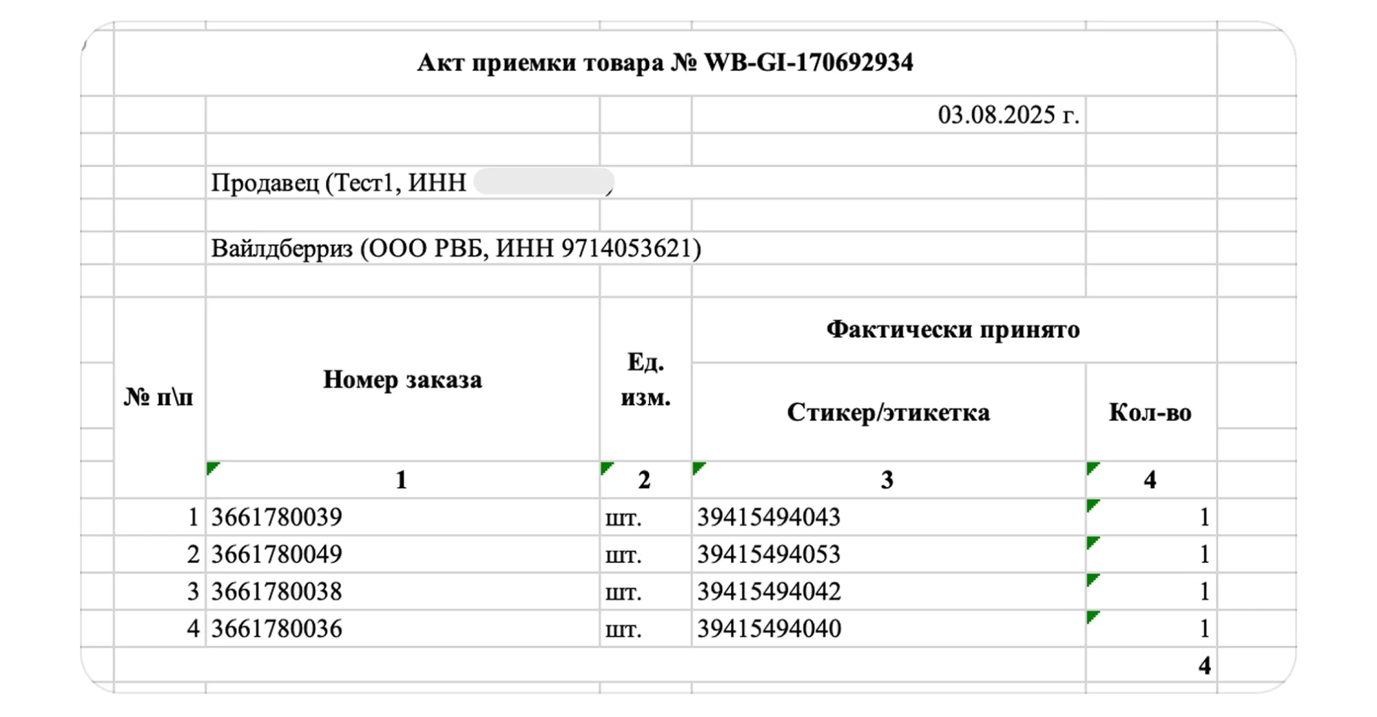 Когда формируется: до 10 рабочих дней от даты отгрузки поставки на склад.