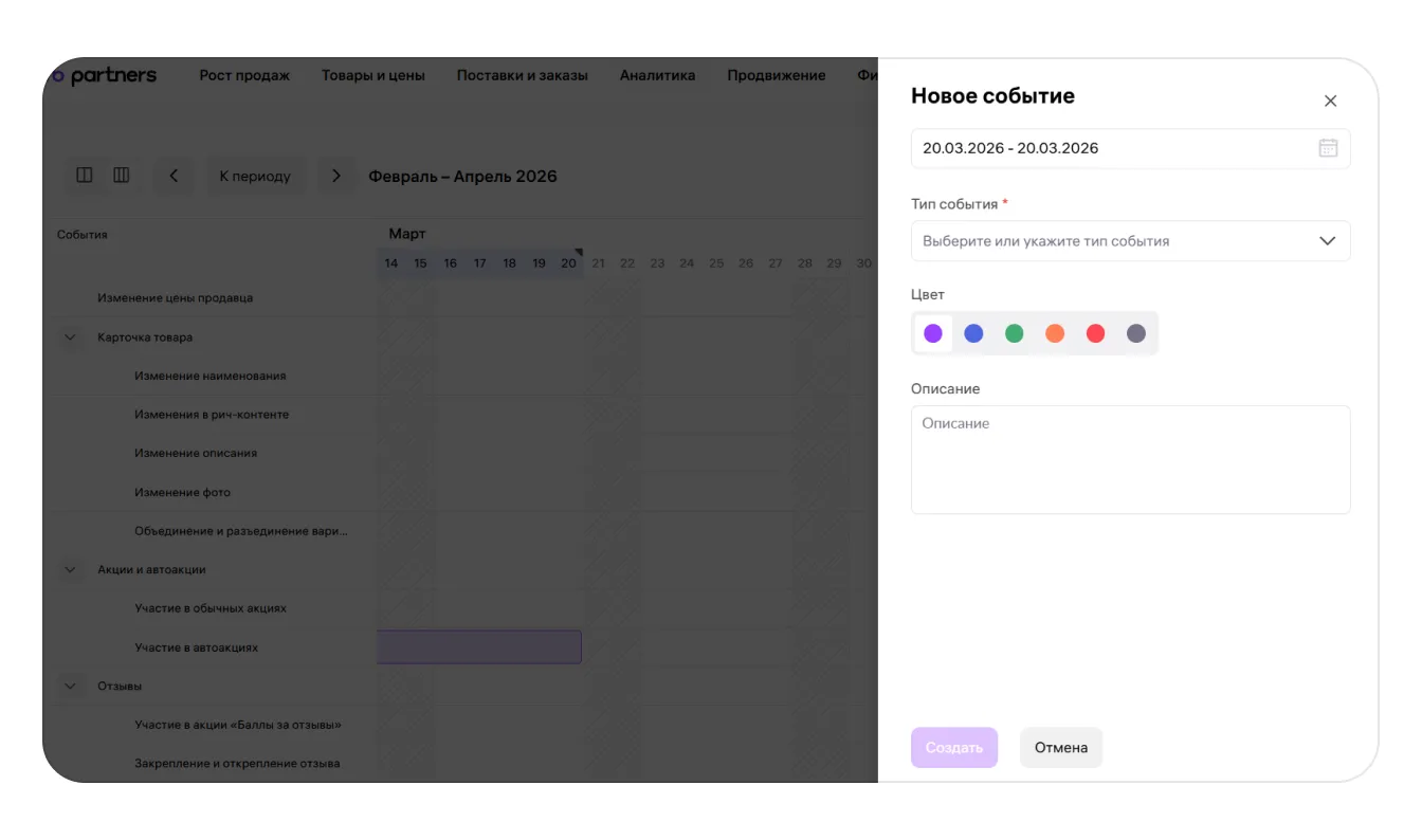 Например, если вы запланировали рекламную кампанию с блогерами, можно создать такое событие, а потом отслеживать его влияние на бизнес-метрики и корректировать стратегию.