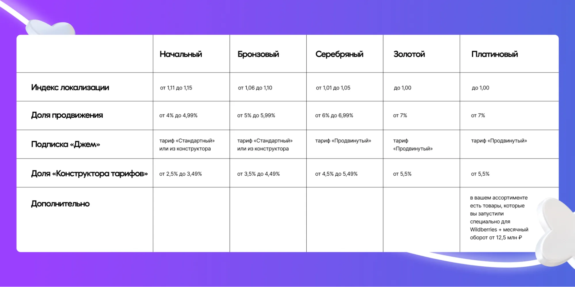 На каждом из уровней продавцы могут получить скидку на коэффициент вознаграждения Wildberries — то есть на комиссию с продаж. Скидка не зависит от категории товаров, которые вы продаёте, и может составить от 0,5% до 4%.