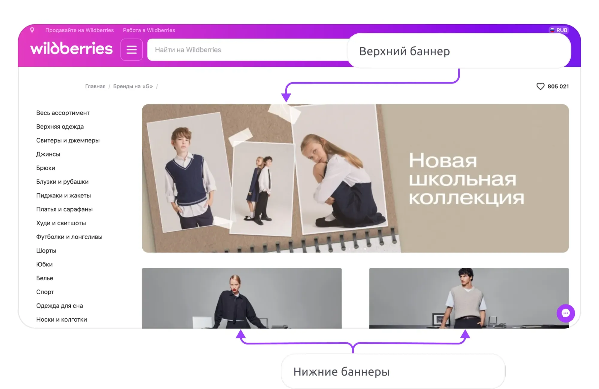 Если заказываете оформление у WB: создание трёх баннеров для сайта и приложения: 1 главный баннер и 2 статичных нижних баннера — 100 000 ₽.