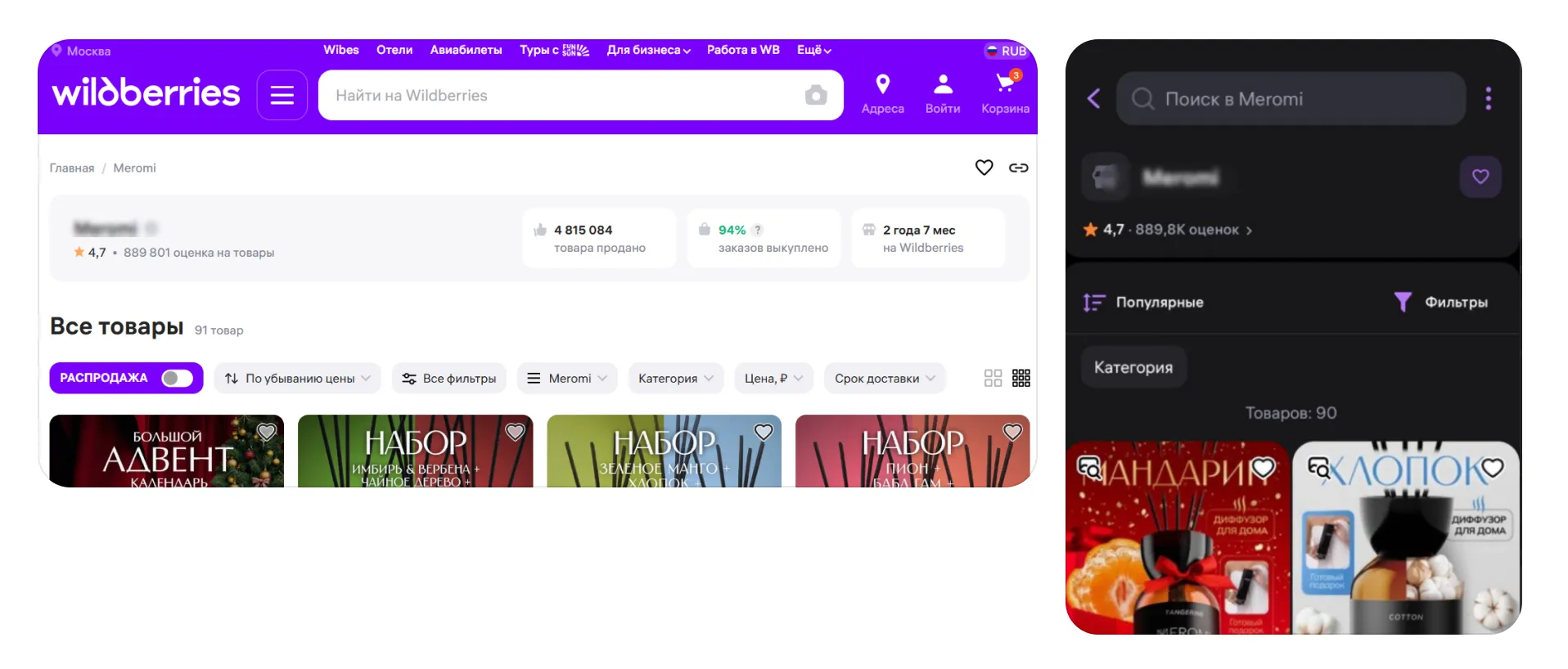 По данным наших внутренних исследований, большинство покупателей Wildberries ищут товары не только через поиск, но и переходят на страницы продавца или бренда, чтобы оценить ассортимент продавца. Это один из сценариев принятия решения о покупке. То есть оформление страниц — это не формальность, а рабочий инструмент продаж. Продуманное оформление поможет удерживать внимание покупателей и может влиять на конверсию.
