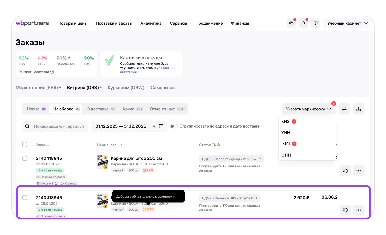 Обновлено 01.04.2026Как работать с заказами по модели «Курьером WB» (DBW)