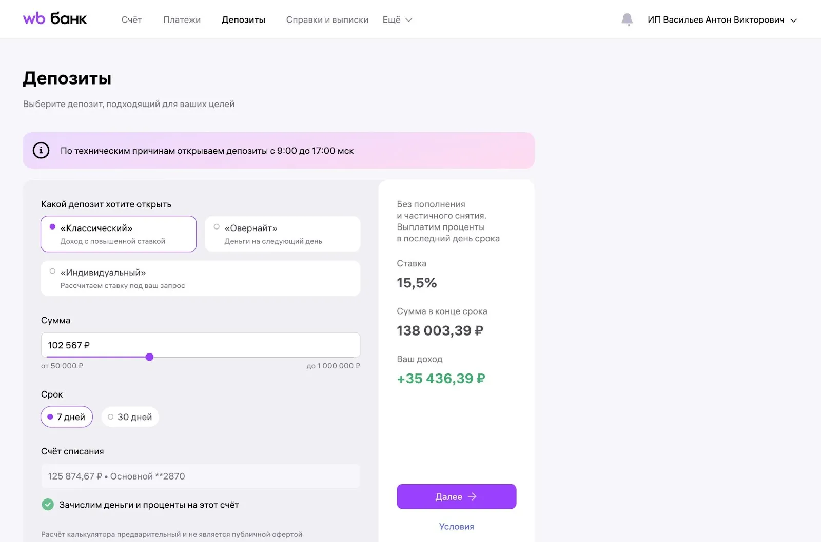 Как открыть депозит в личном кабинете ООО «Вайлдберриз Банк»