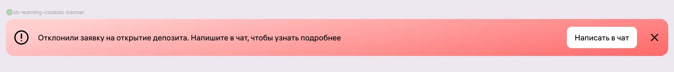 Если вам откажут в открытии депозита, вы увидите это в личном кабинете: