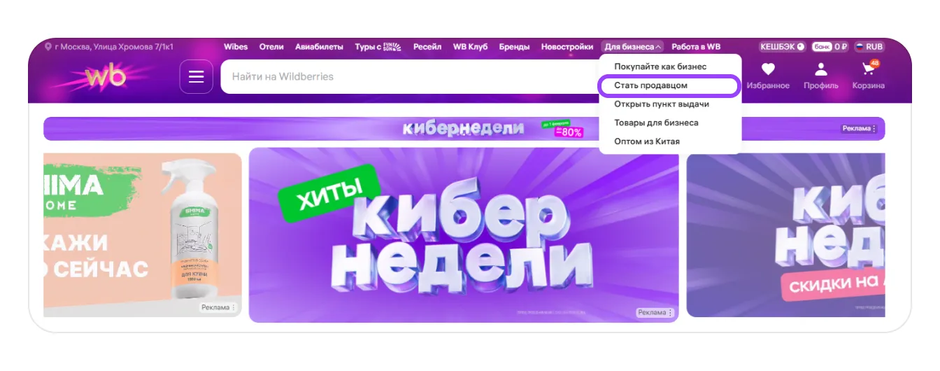 Чтобы продавать товары на Wildberries, нужно создать личный кабинет на портале WB Partners.